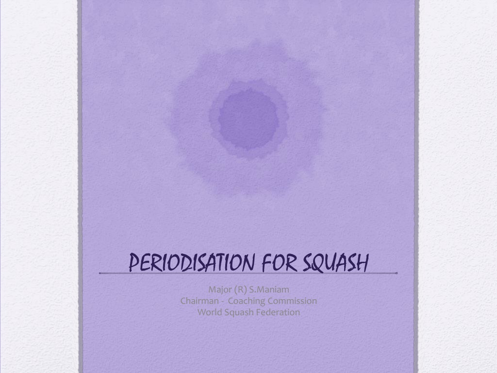 PERIODISATION FOR SQUASH Major (R) S.Maniam Chairman - Coaching Commission World Squash Federation