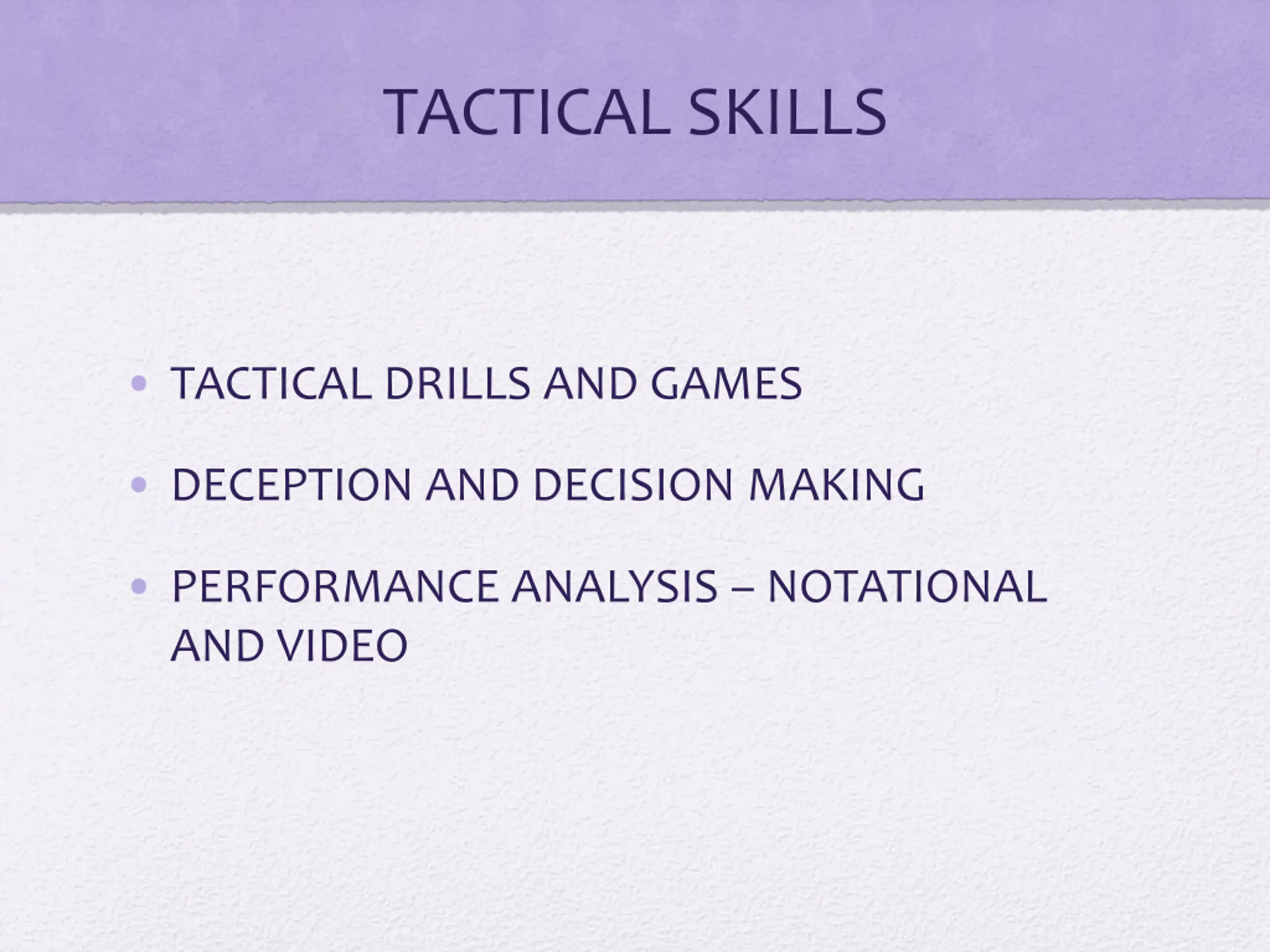 TACTICAL SKILLS TACTICAL DRILLS AND GAMES DECEPTION AND DECISION MAKING PERFORMANCE ANALYSIS NOTATIONAL AND VIDEO