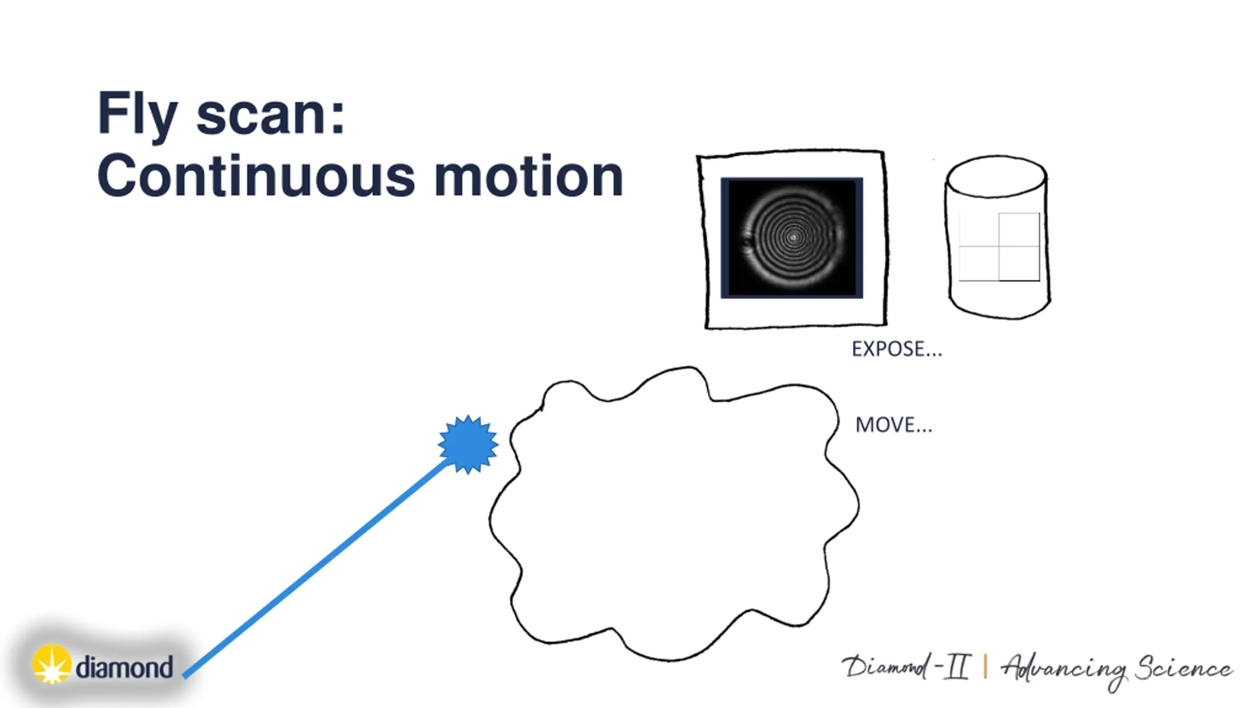 Fly scan: Continuous motion EXPOSE... MOVE...