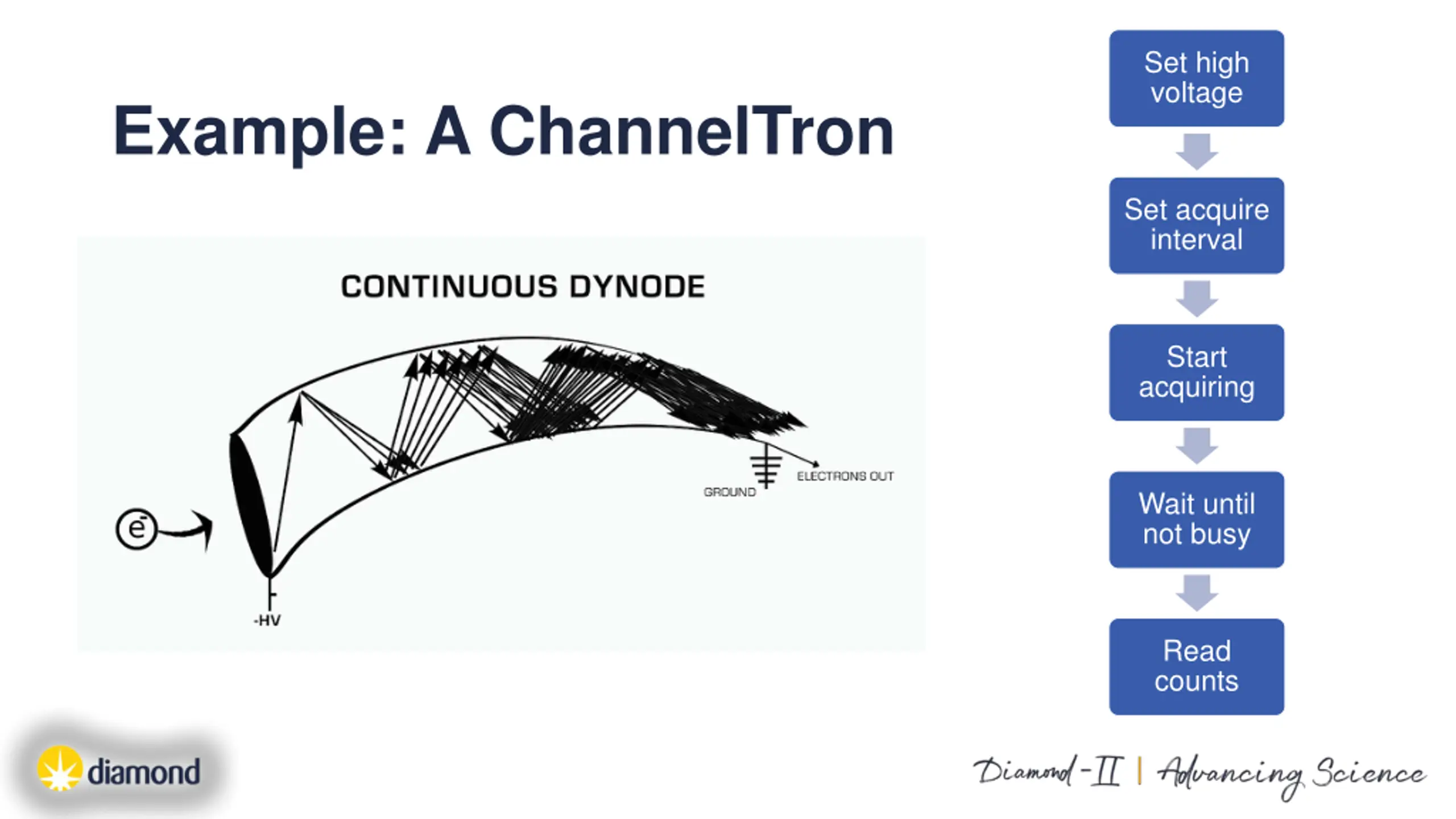 Set high voltage Example: A ChannelTron Set acquire interval Start acquiring Wait until not busy Read counts