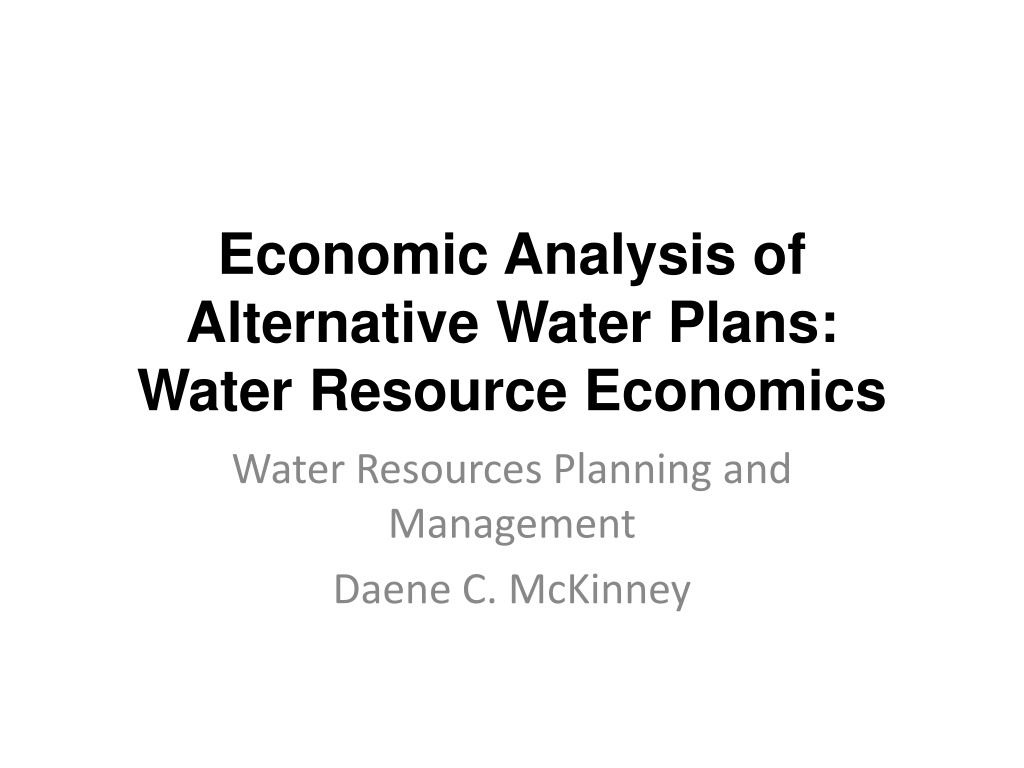 Economic Analysis of Alternative Water Plans: Water Resource Economics Water Resources Planning and Management Daene C. McKinney