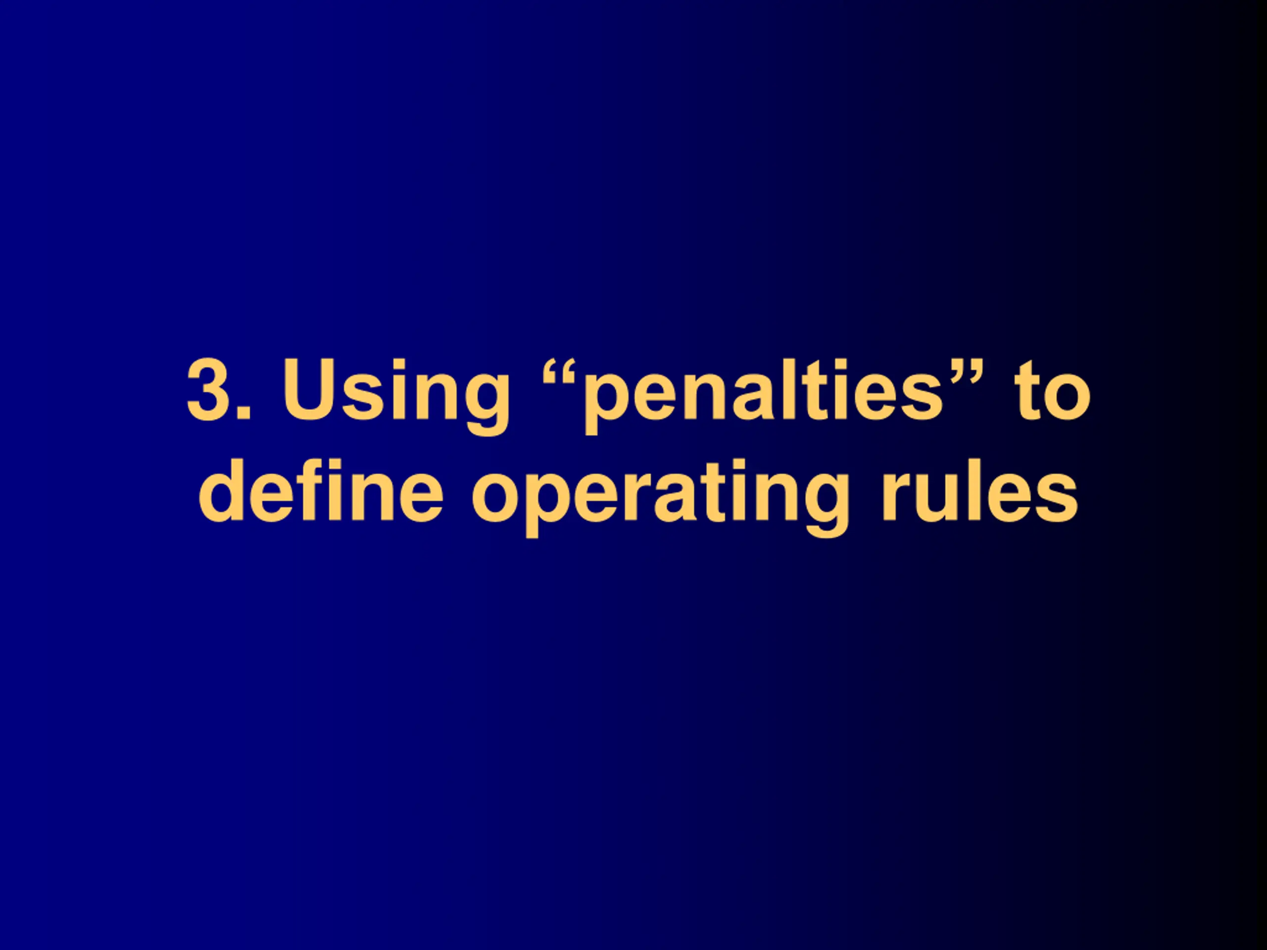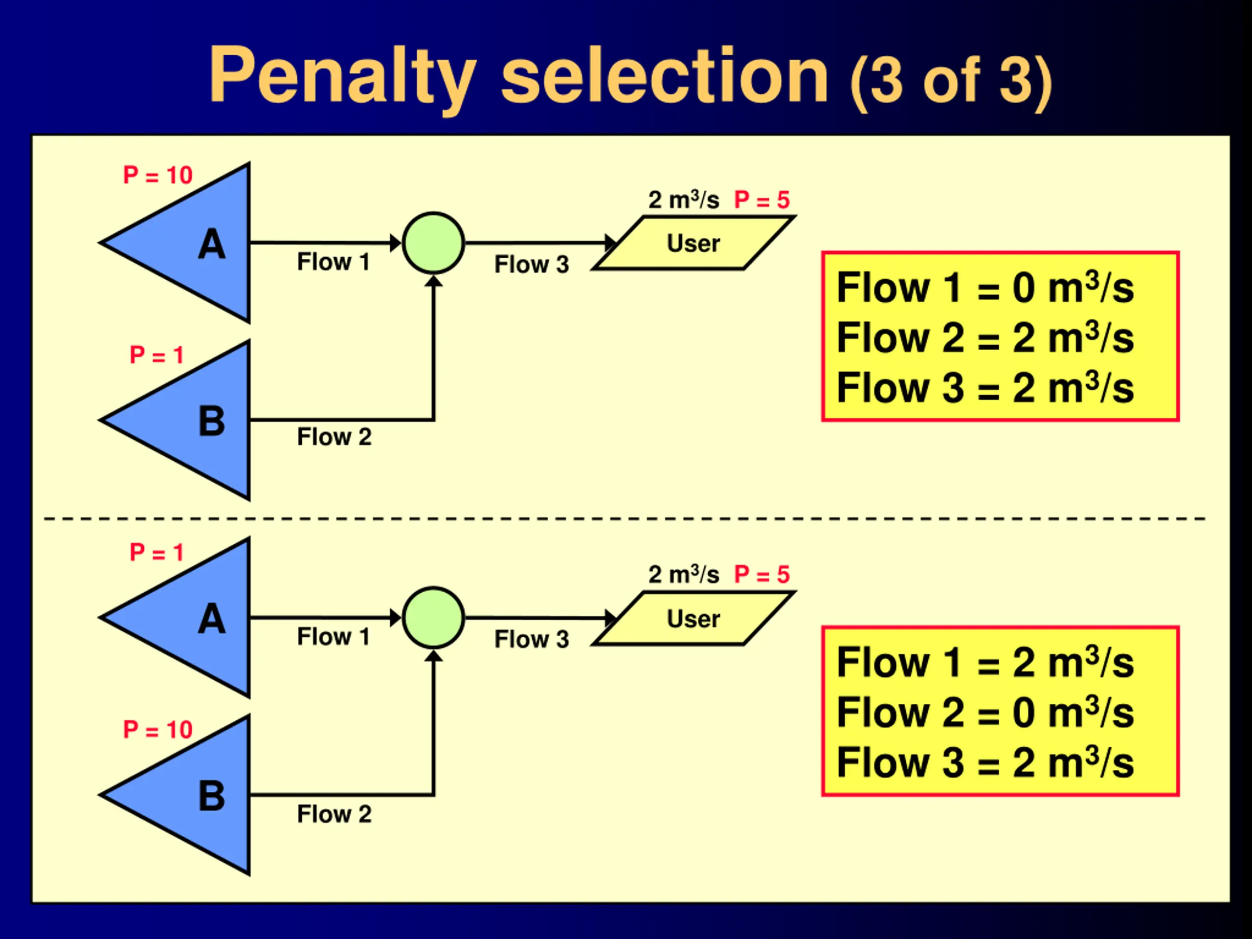 Penalty selection (3 of 3) P = 10 2 m3/s P = 5 A User Flow 1 Flow 3 Flow 1 = 0 m3/s Flow 2 = 2 m3/s Flow 3 = 2 m3/s P = 1 B Flow 2 P = 1 2 m3/s P = 5 A User Flow 1 Flow 3 Flow 1 = 2 m3/s Flow 2 = 0 m3/s Flow 3 = 2 m3/s P = 10 B Flow 2