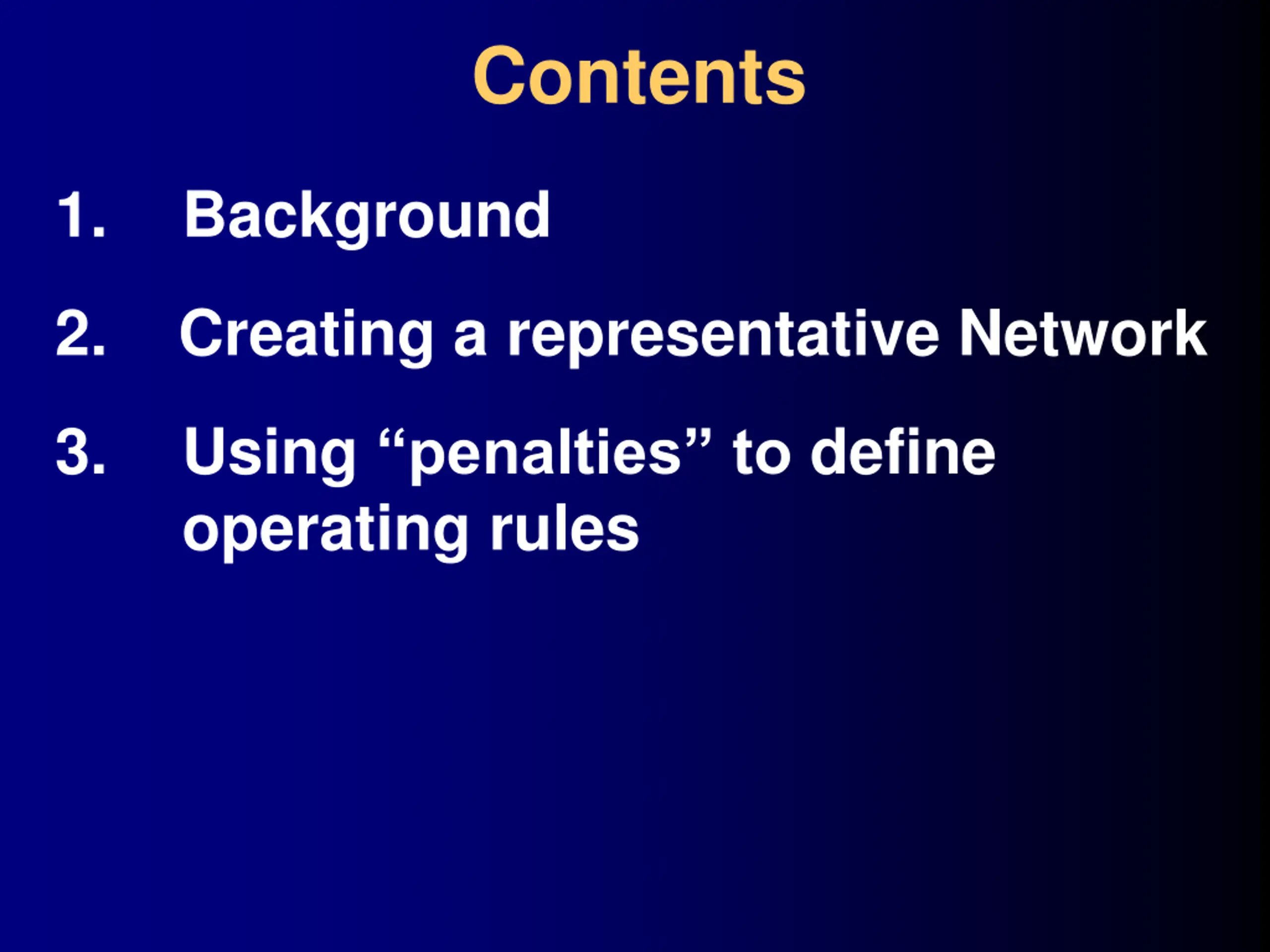 Contents 1. Background 2. Creating a representative Network 3. Using penalties to define operating rules