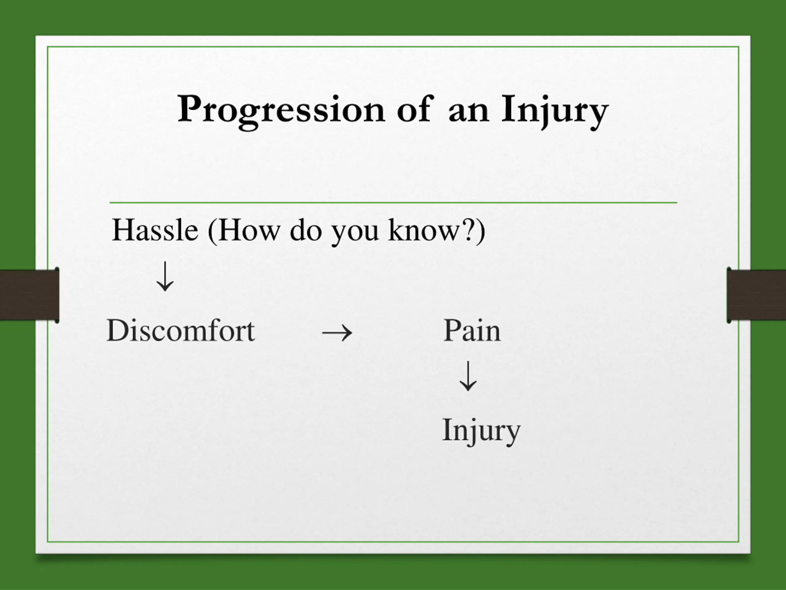 Progression of an Injury Hassle (How do you know?) Discomfort Pain Injury