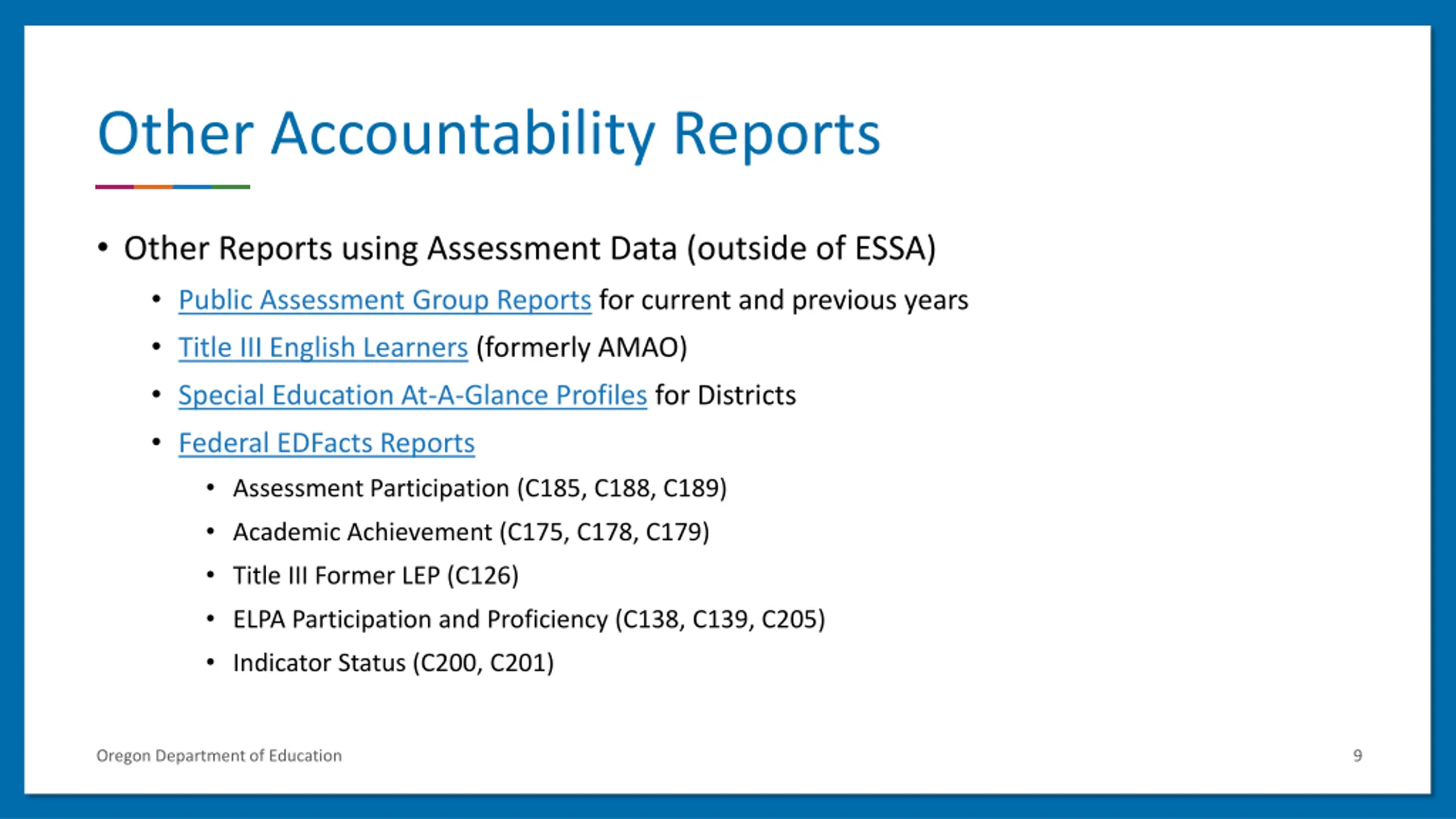 Oregon Department of Education Training: Assessment Reporting and Accountability Details