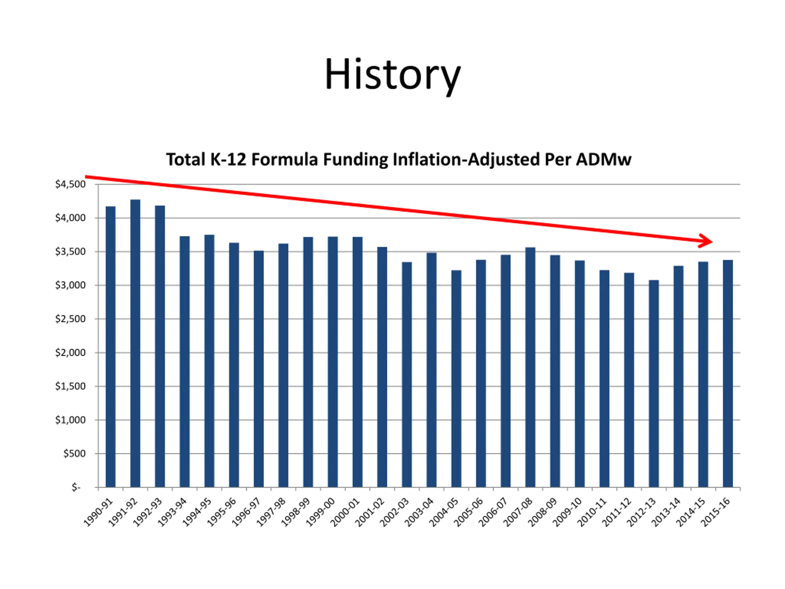 History Total K-12 Formula Funding Inflation-Adjusted Per ADMw $4,500 $4,000 $3,500 $3,000 $2,500 $2,000 $1,500 $1,000 $500 $-