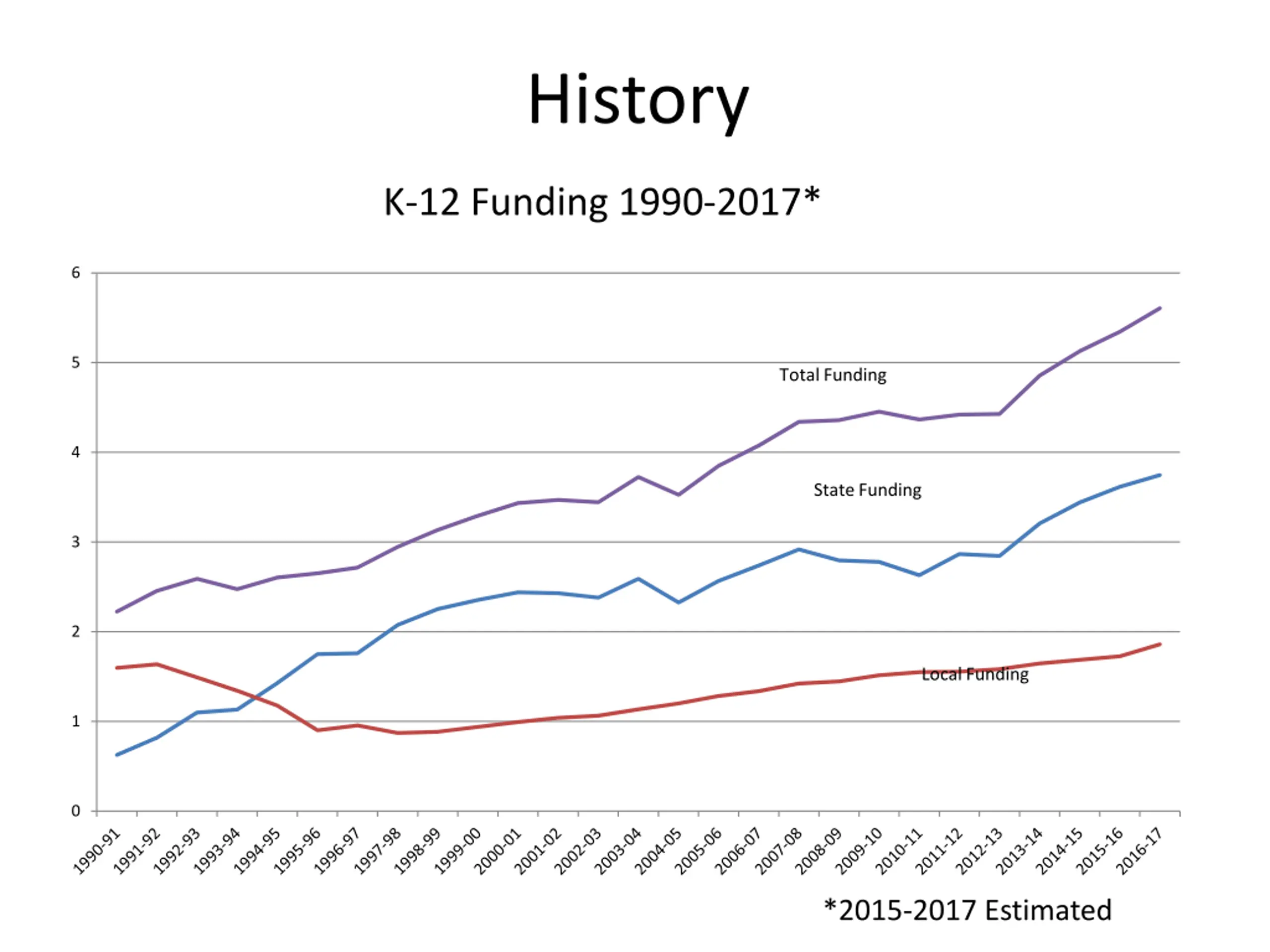 History K-12 Funding 1990-2017* 6 5 Total Funding 4 State Funding 3 2 Local Funding 1 0 *2015-2017 Estimated