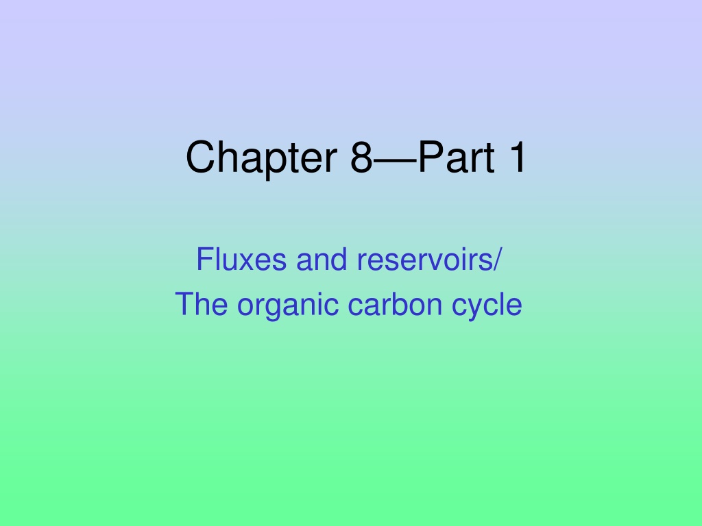 Chapter 8Part 1 Fluxes and reservoirs/ The organic carbon cycle