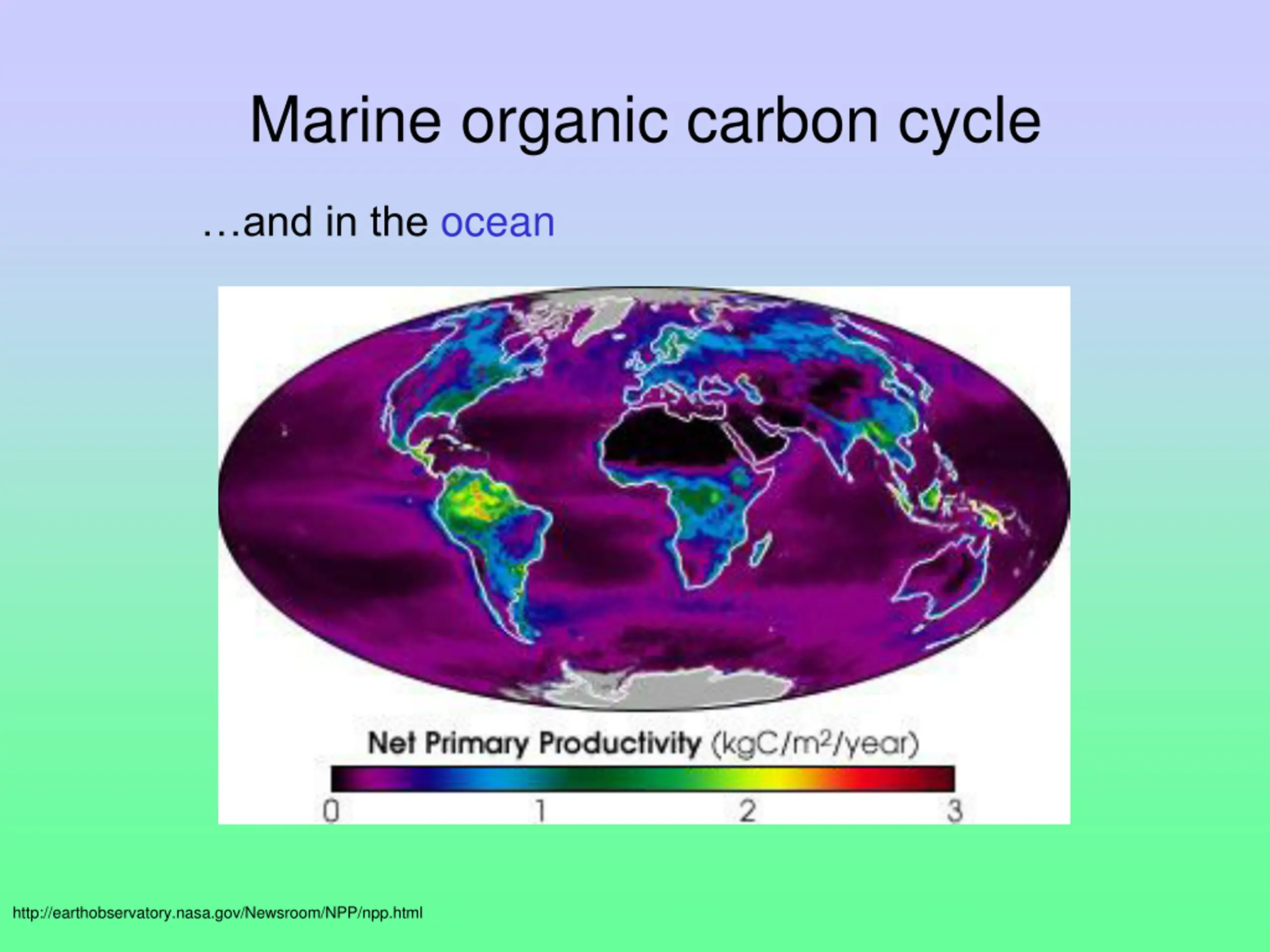 Marine organic carbon cycle and in the ocean http://earthobservatory.nasa.gov/Newsroom/NPP/npp.html
