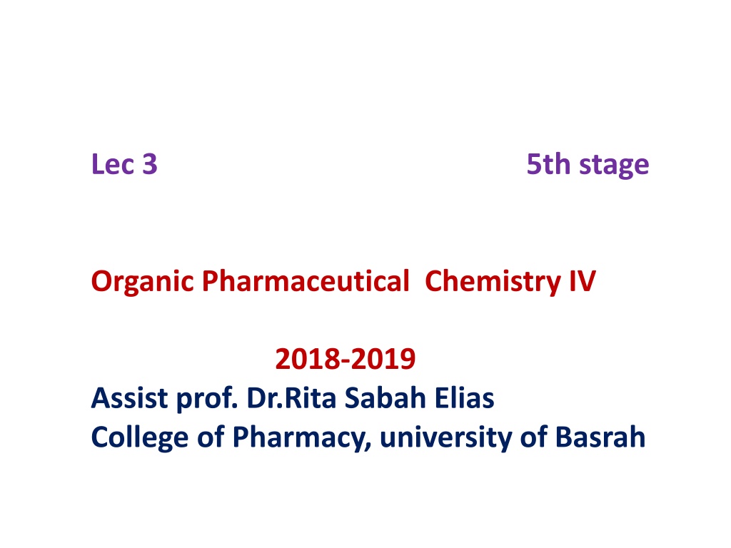 Lec 3 5th stage Organic Pharmaceutical Chemistry IV 2018-2019 Assist prof. Dr.Rita Sabah Elias College of Pharmacy, university of Basrah