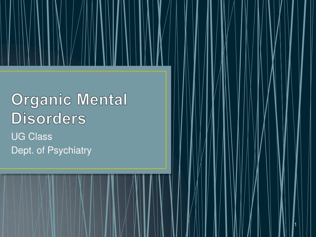 Traditional distinctions between organic and functional psychiatric disorders are outdated as every disorder has an organic component, emphasizing the interconnectedness of the biological and psychological aspects of mental health. In the context of ICD-10 classification, various conditions like dementia, delirium, and personality disorders due to brain dysfunction fall under the spectrum of organic disorders. A case study of a 78-year-old man admitted for hernia repair highlights the importance of recognizing cognitive decline and behavioral changes in the elderly post-surgery.