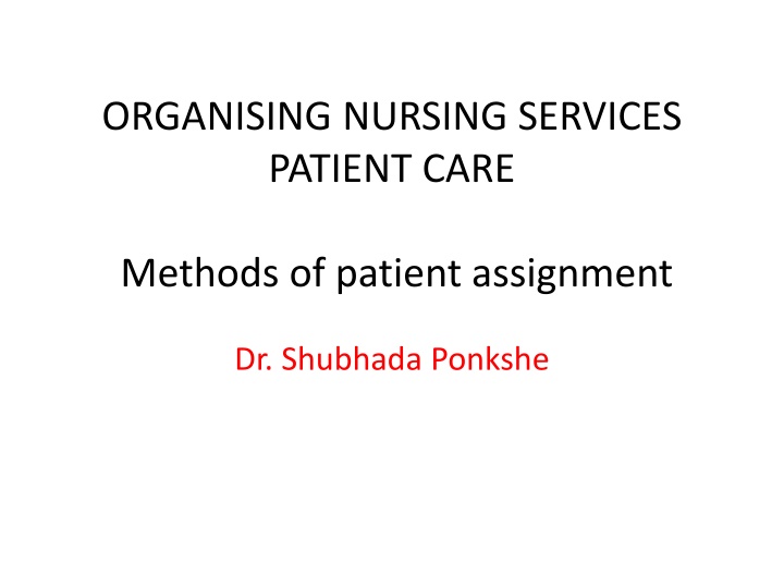 ORGANISING NURSING SERVICES PATIENT CARE Methods of patient assignment Dr. Shubhada Ponkshe