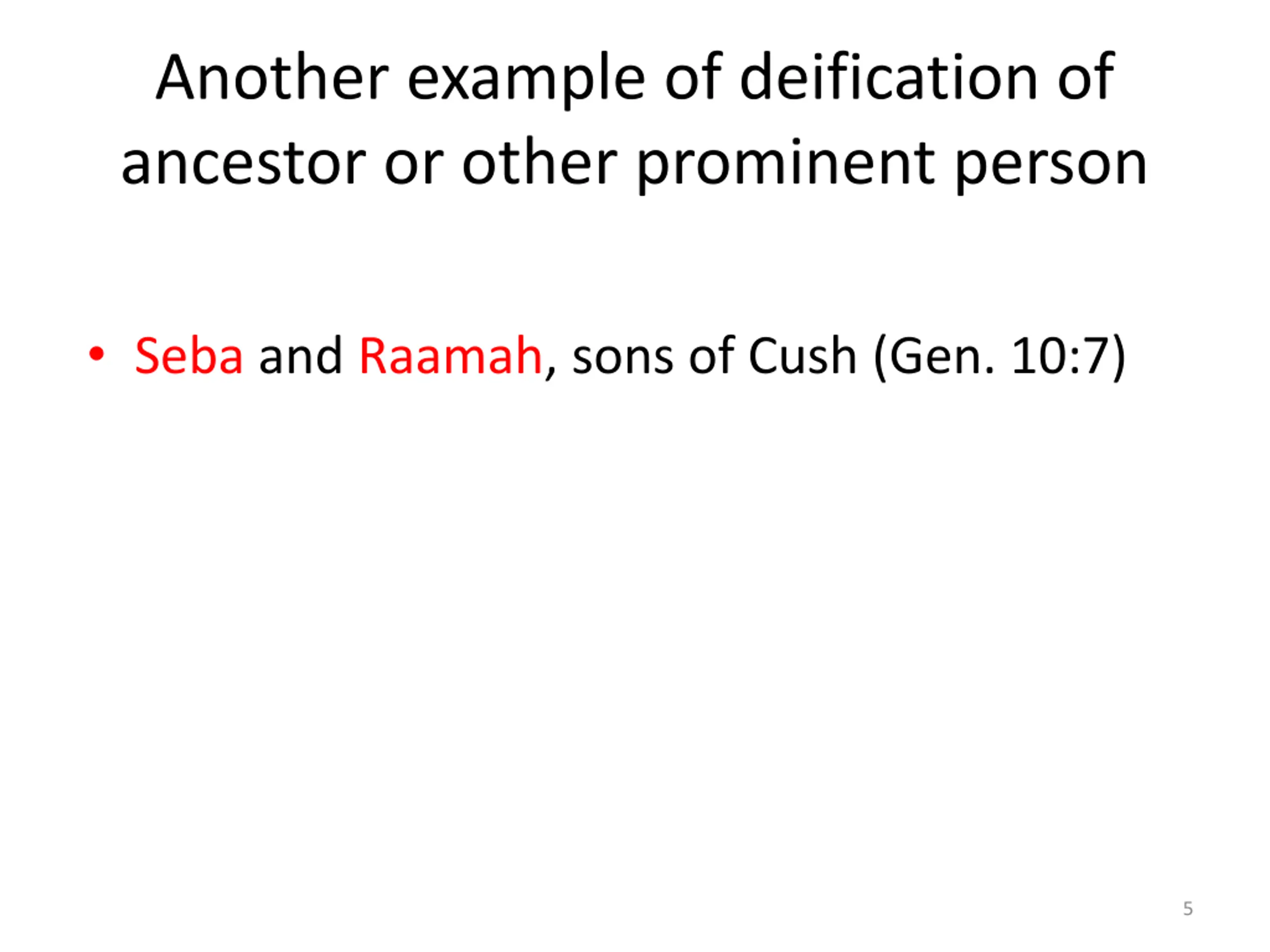 Another example of deification of ancestor or other prominent person Seba and Raamah, sons of Cush (Gen. 10:7) 5