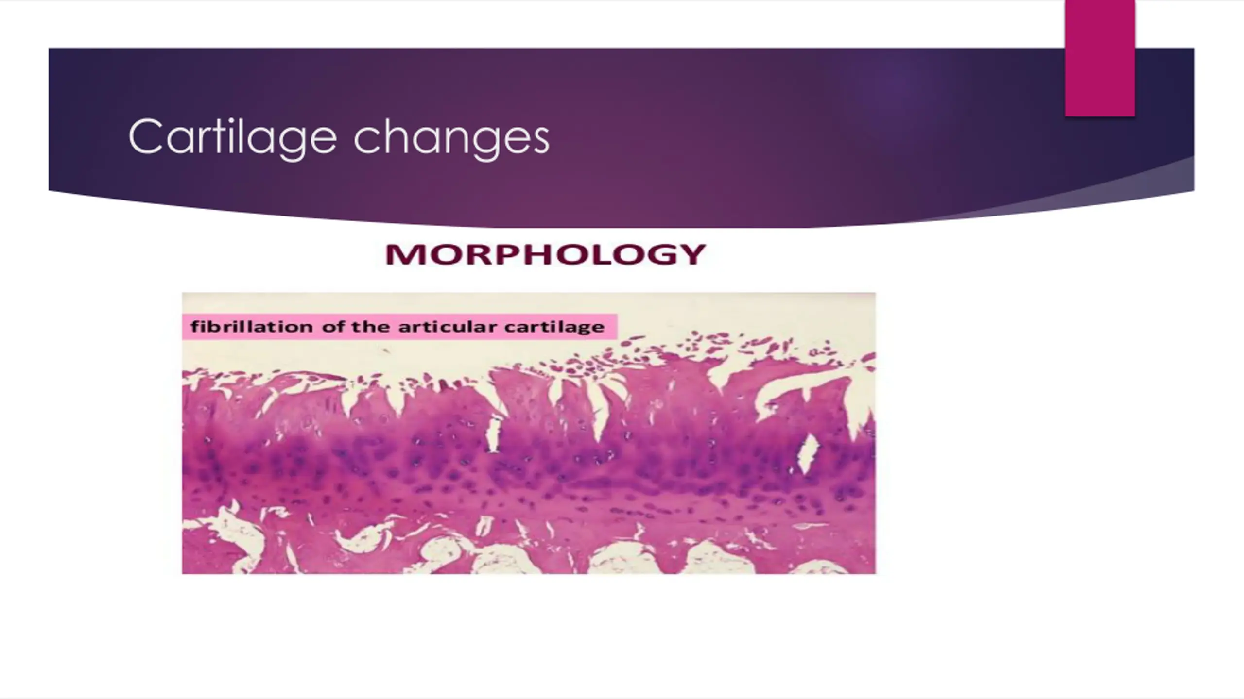 Pathogenesis Swelling of the cartilage usually occurs the level of proteoglycans eventually drops very low, the cartilage softens and lose elasticity and compromising joint surface integrity. Flaking and fibrillations (vertical clefts) develop along on the surface of an osteoarthritic joint. Over time, the loss of cartilage results in loss of joint space. a greater loss of joint space occurs at those areas experiencing the highest loads.