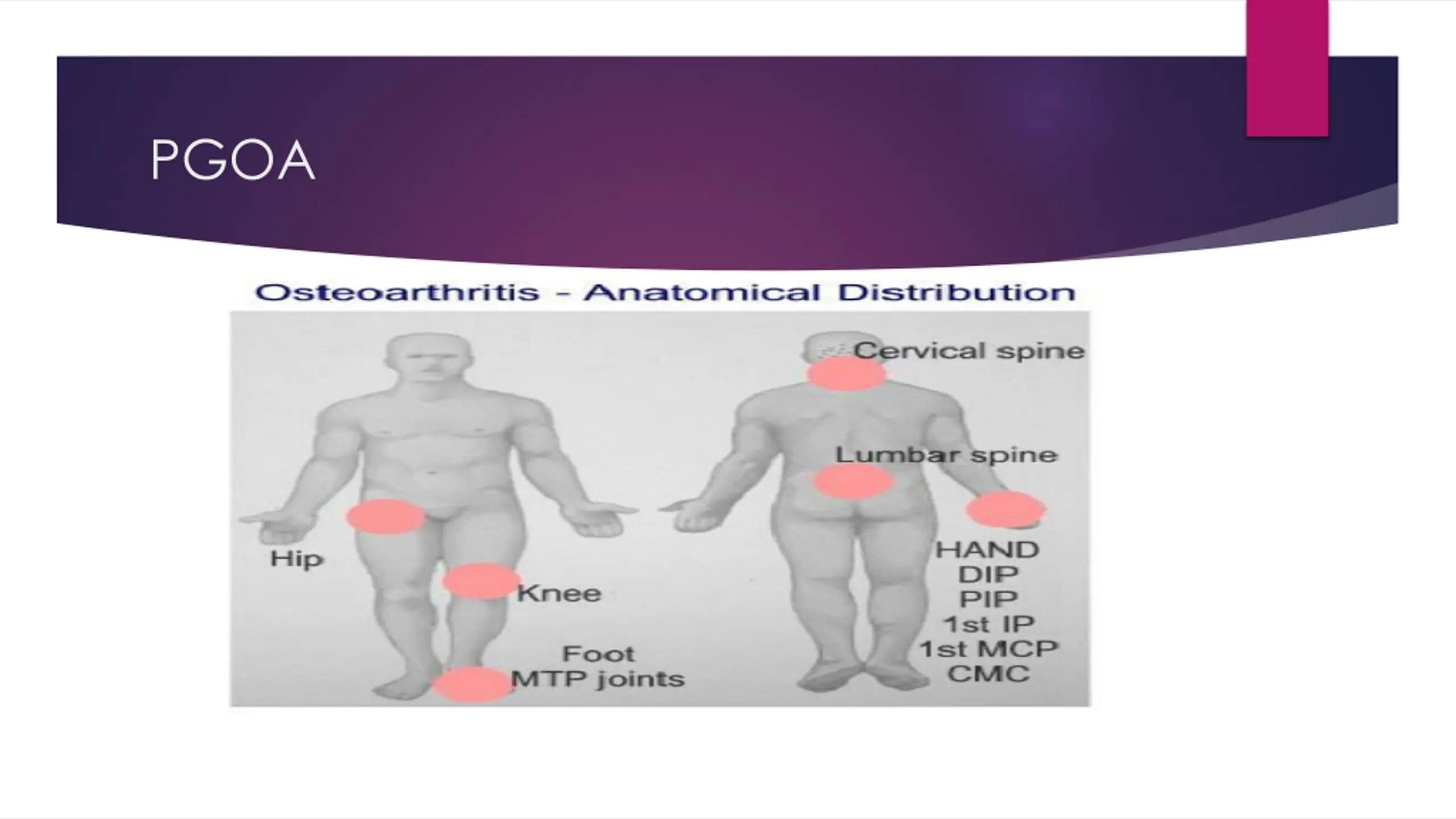 Involved joints Weight-bearing joints, including: the knees the hips cervical and lumbosacral spine feet. Non weight bearing joints: the(DIP), the(PIP), and the(CMC) joints.