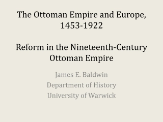 The Ottoman Empire and Europe, 1453- 1922 Mediterranean Trade and the Changing Balance of Economic Power, Seventeenth and Eighteenth Centuries James E. Baldwin Department of History University of Warwick
