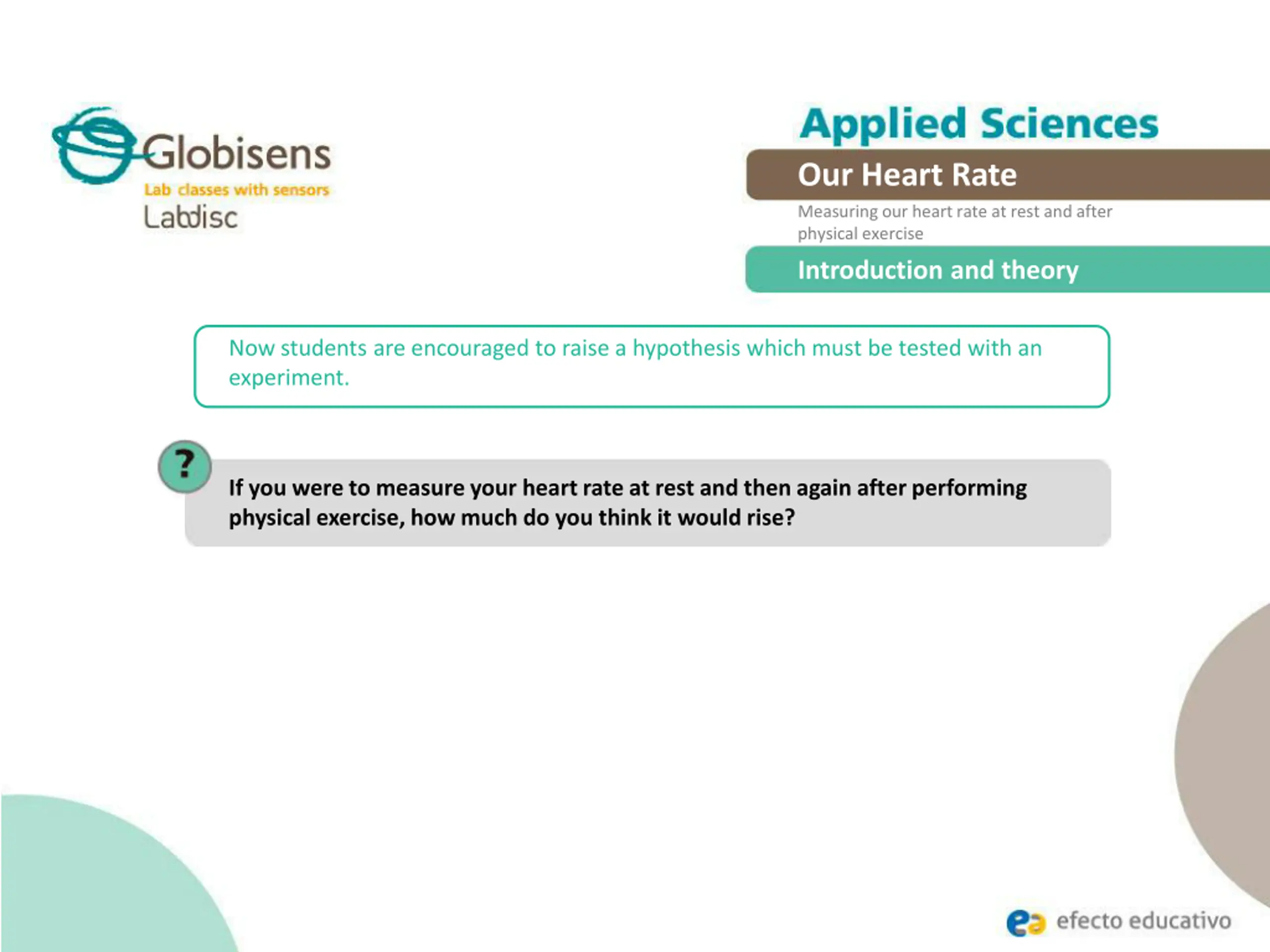 Our Heart Rate Measuring our heart rate at rest and after physical exercise Introduction and theory Now students are encouraged to raise a hypothesis which must be tested with an experiment. If you were to measure your heart rate at rest and then again after performing physical exercise, how much do you think it would rise?