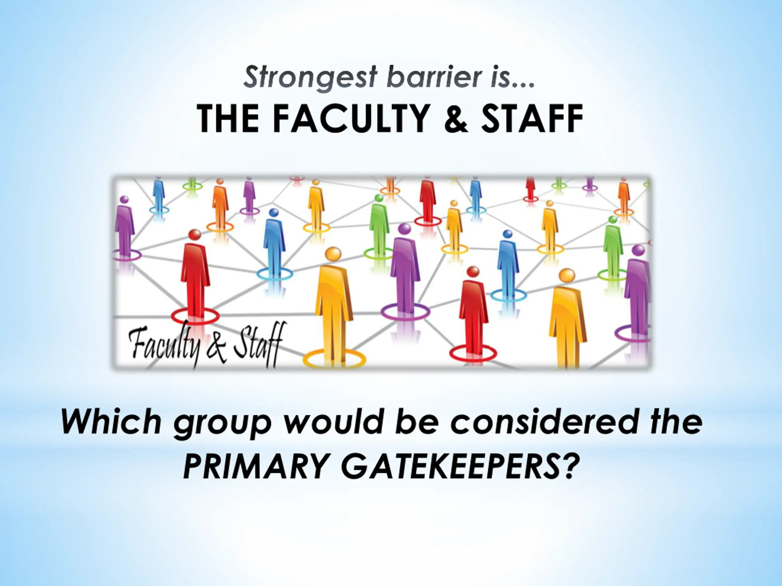 Strongest barrier is... THE FACULTY & STAFF Click to add text Which group would be considered the PRIMARY GATEKEEPERS?