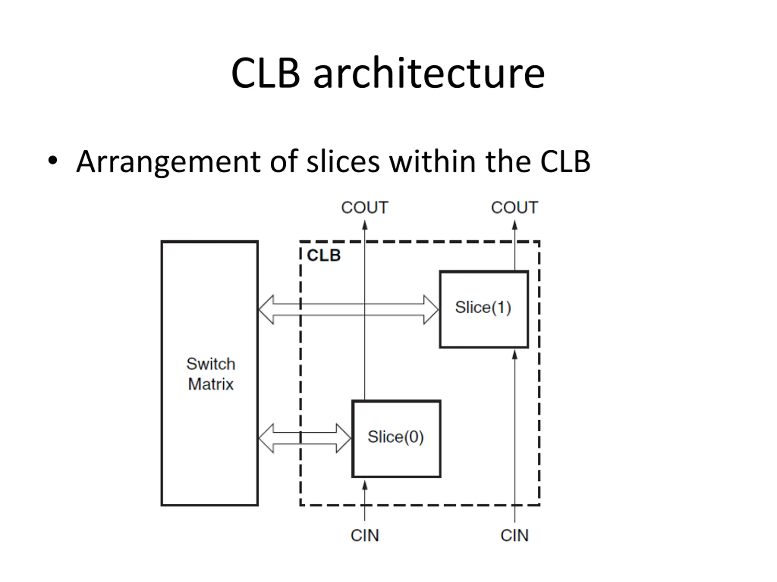 CLB architecture Arrangement of slices within the CLB
