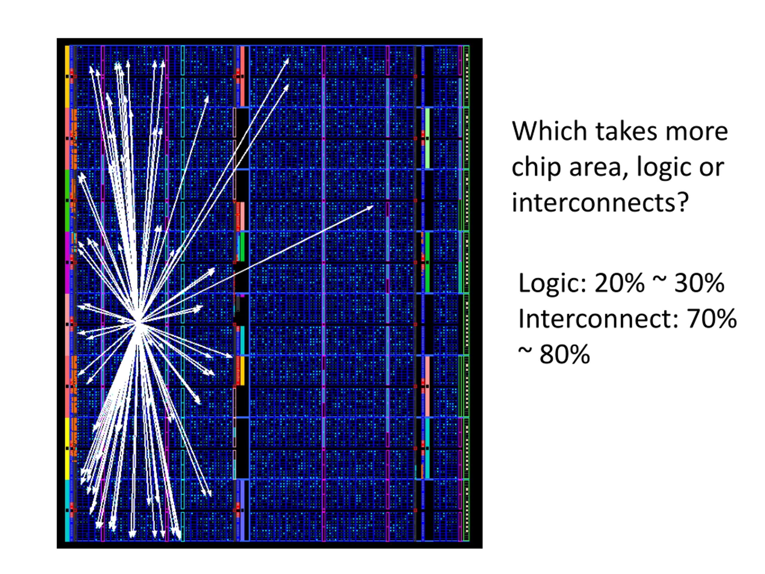 Which takes more chip area, logic or interconnects? Logic: 20% ~ 30% Interconnect: 70% ~ 80%