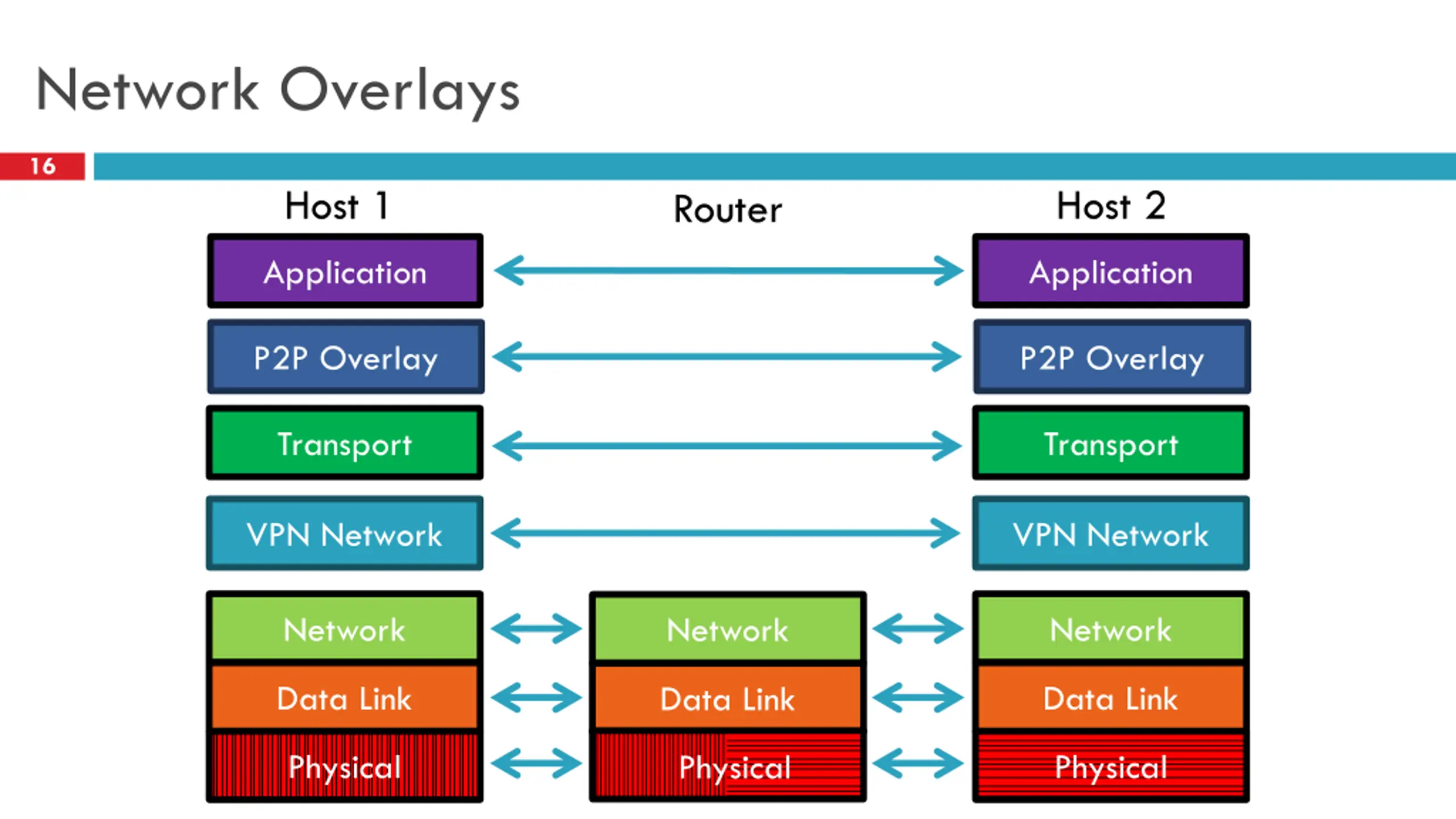 Network Overlays 16 Host 1 Host 2 Router Application Application P2P Overlay P2P Overlay Transport Transport VPN Network VPN Network Network Network Network Data Link Data Link Data Link Physical Physical Physical