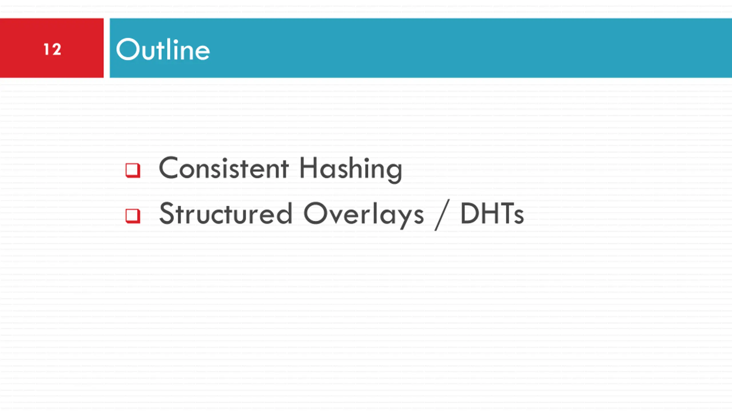 Outline 12 Consistent Hashing Structured Overlays / DHTs