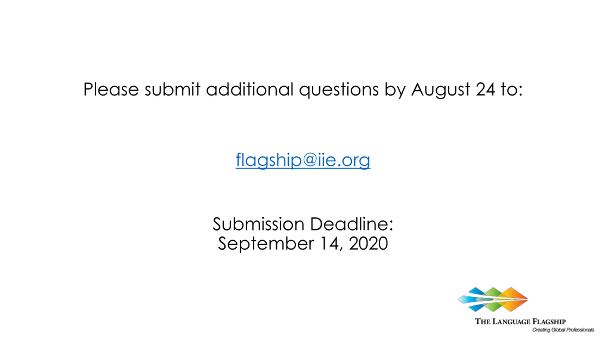 Please submit additional questions by August 24 to: flagship@iie.org Submission Deadline: September 14, 2020