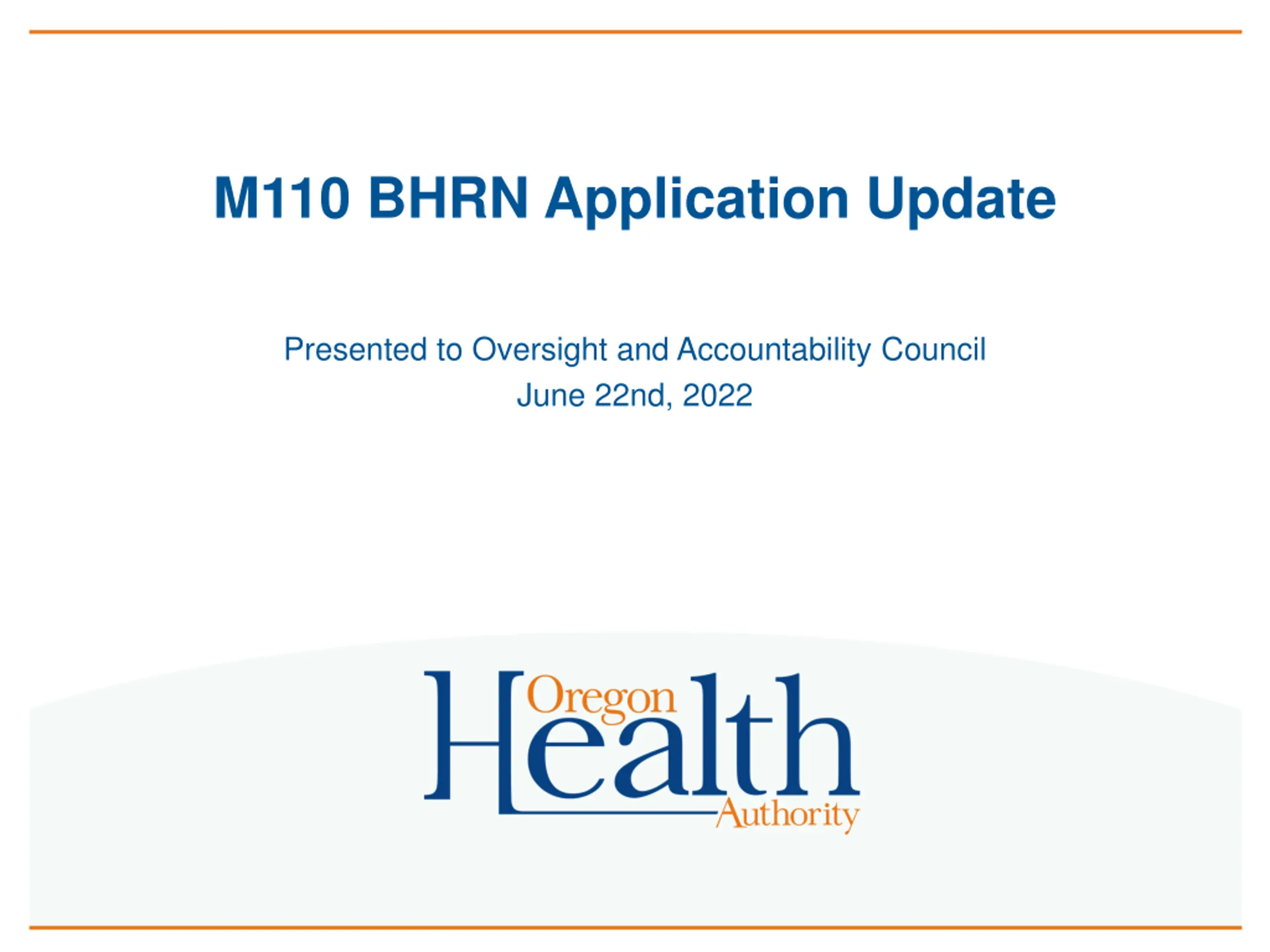 M110 BHRN Application Update Presented to Oversight and Accountability Council June 22nd, 2022