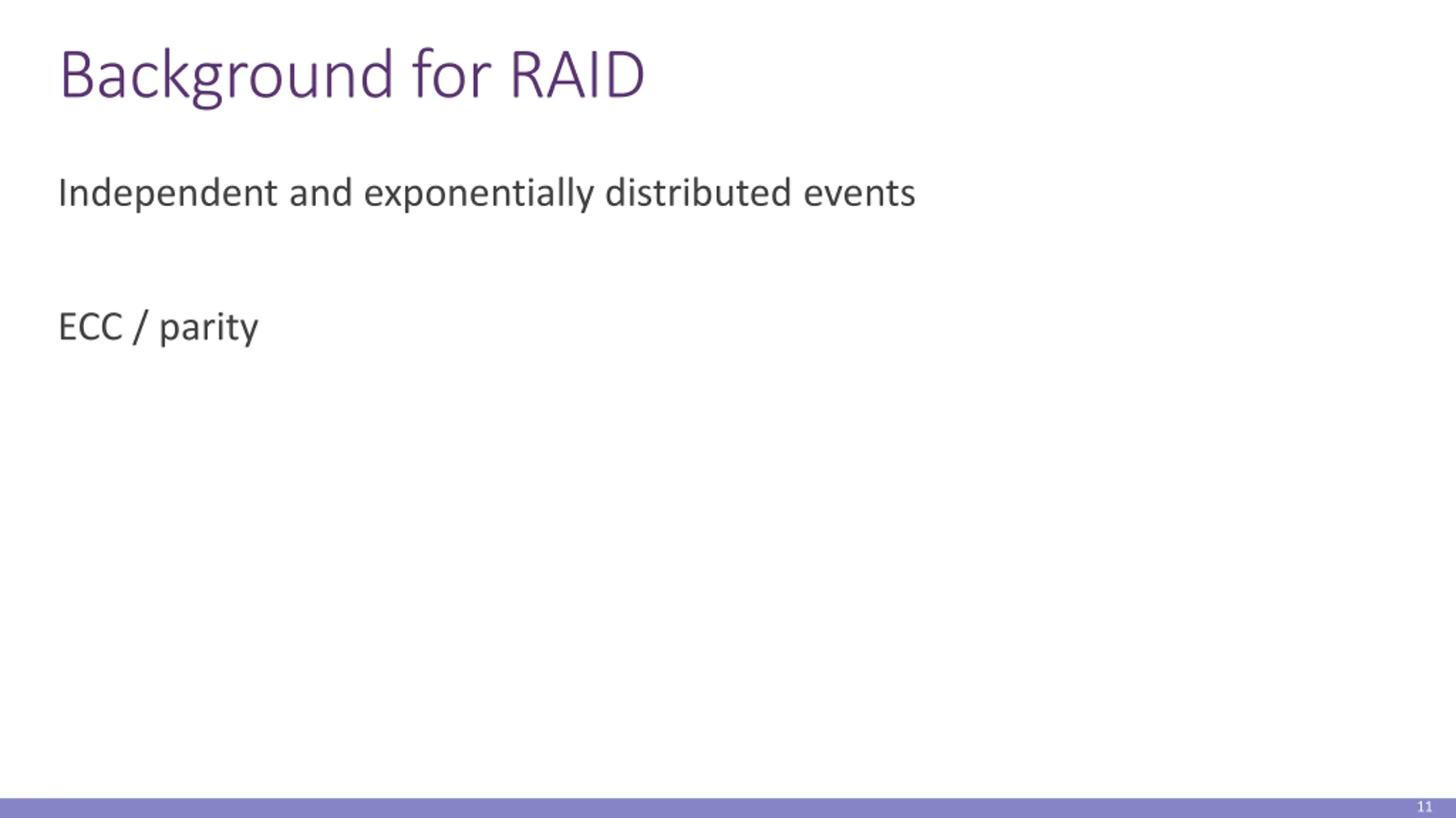 Background for RAID Independent and exponentially distributed events ECC / parity 11