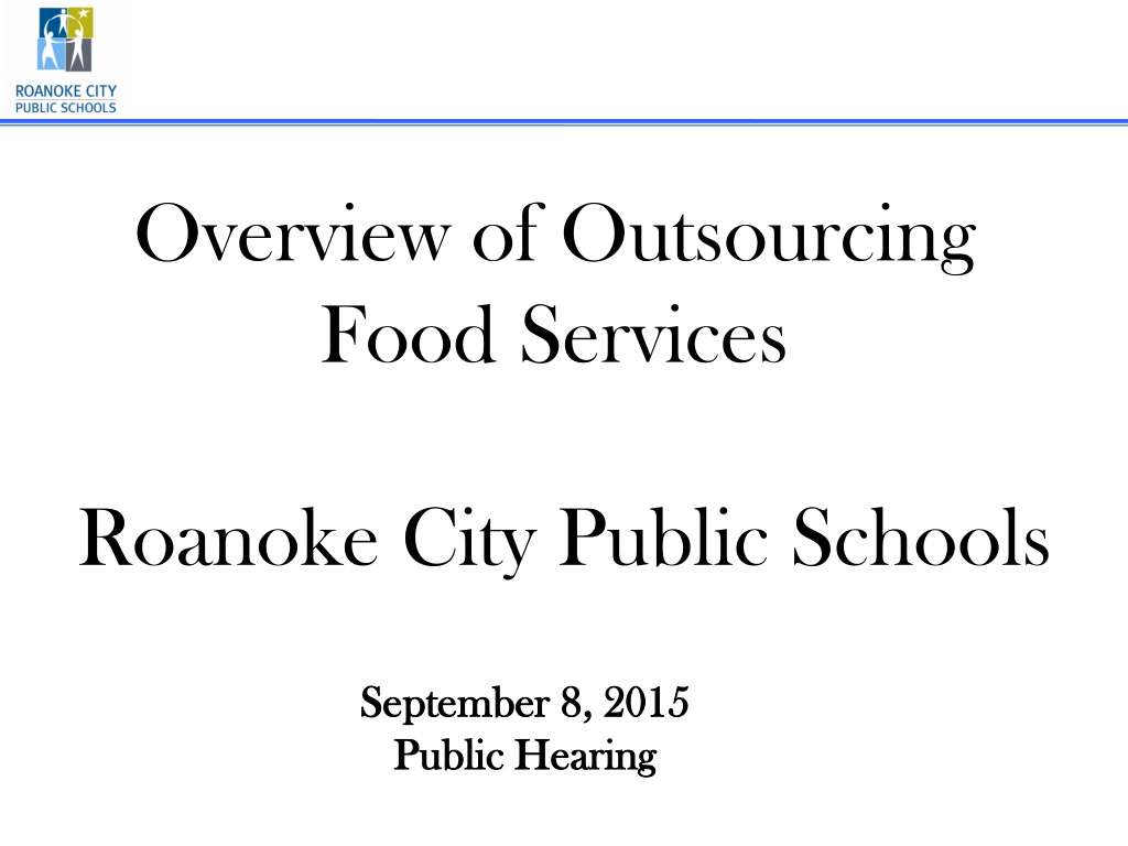 Overview of Outsourcing Food Services Roanoke City Public Schools September 8, 2015 September 8, 2015 Public Hearing Public Hearing 1