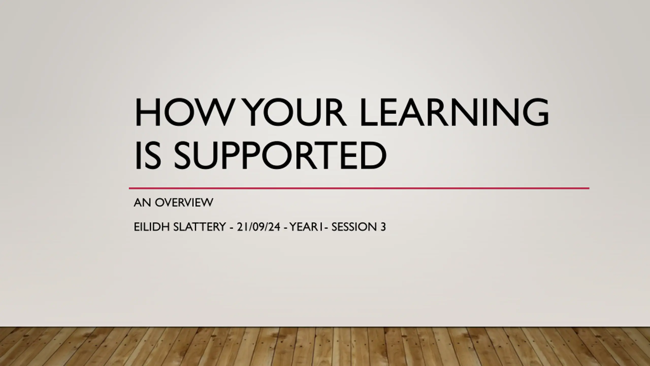 HOW YOUR LEARNING IS SUPPORTED AN OVERVIEW EILIDH SLATTERY - 21/09/24 -YEAR1- SESSION 3