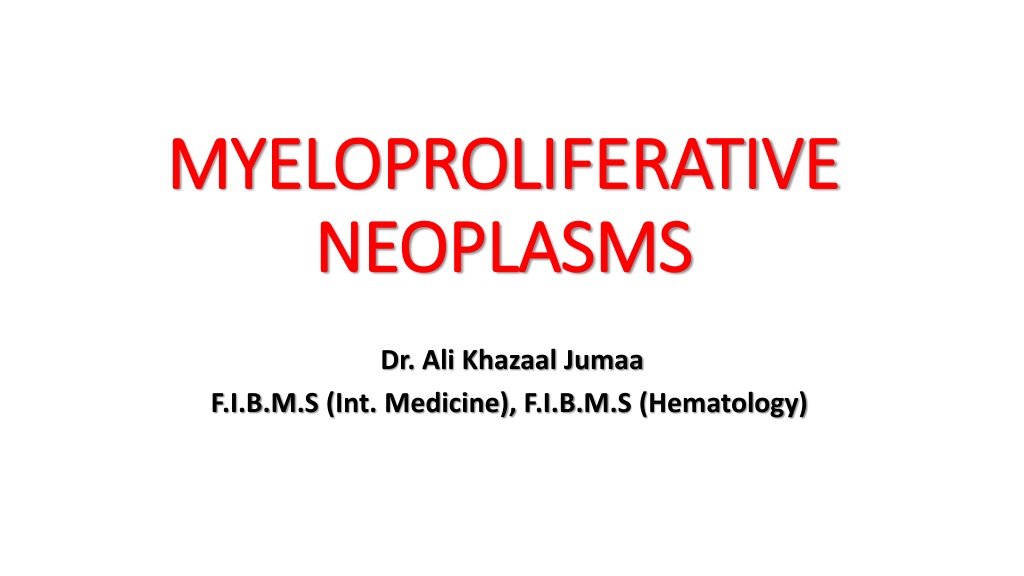 MYELOPROLIFERATIVE MYELOPROLIFERATIVE NEOPLASMS NEOPLASMS Dr. Ali Khazaal Jumaa F.I.B.M.S (Int. Medicine), F.I.B.M.S (Hematology)
