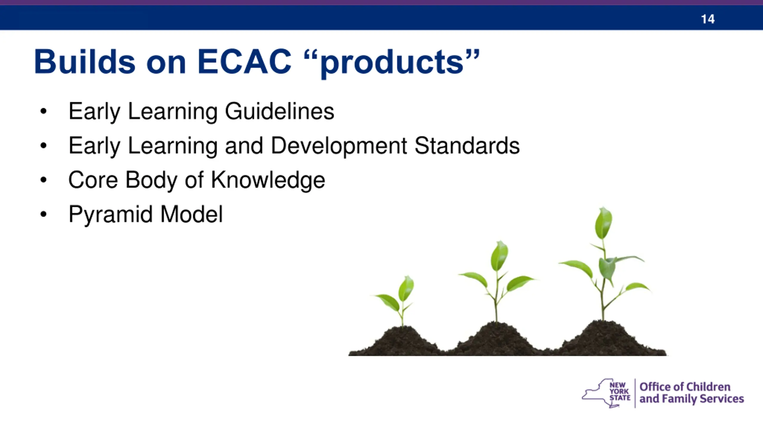 March 21, 2025 Coordinate with ECAC members, including Council on Children & Families Early Care & Learning Council New York Association for the Education of Young Children New York State Department of Health New York State Education Department Professional Development Institute QUALITYstarsNY 15