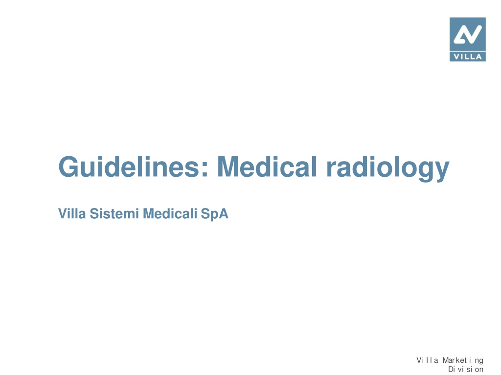 Guidelines: Medical radiology Villa Sistemi Medicali SpA Vi l l a Mar ket i ng Di vi si on