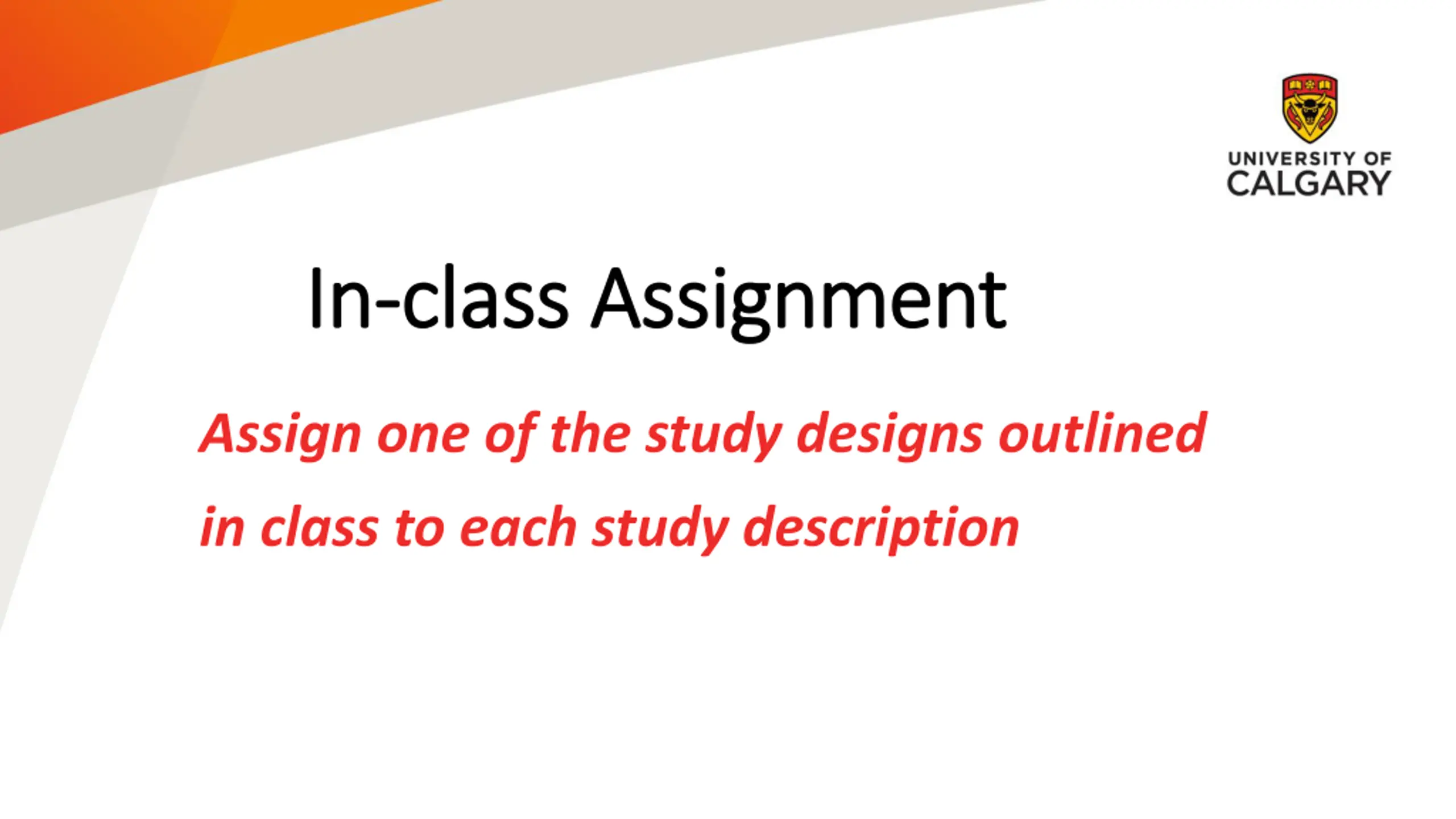 In In- -class Assignment class Assignment Assign one of the study designs outlined in class to each study description