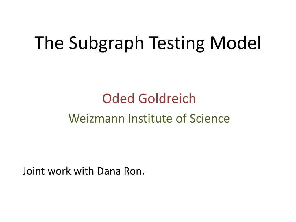 The Subgraph Testing Model Oded Goldreich Weizmann Institute of Science Joint work with Dana Ron.
