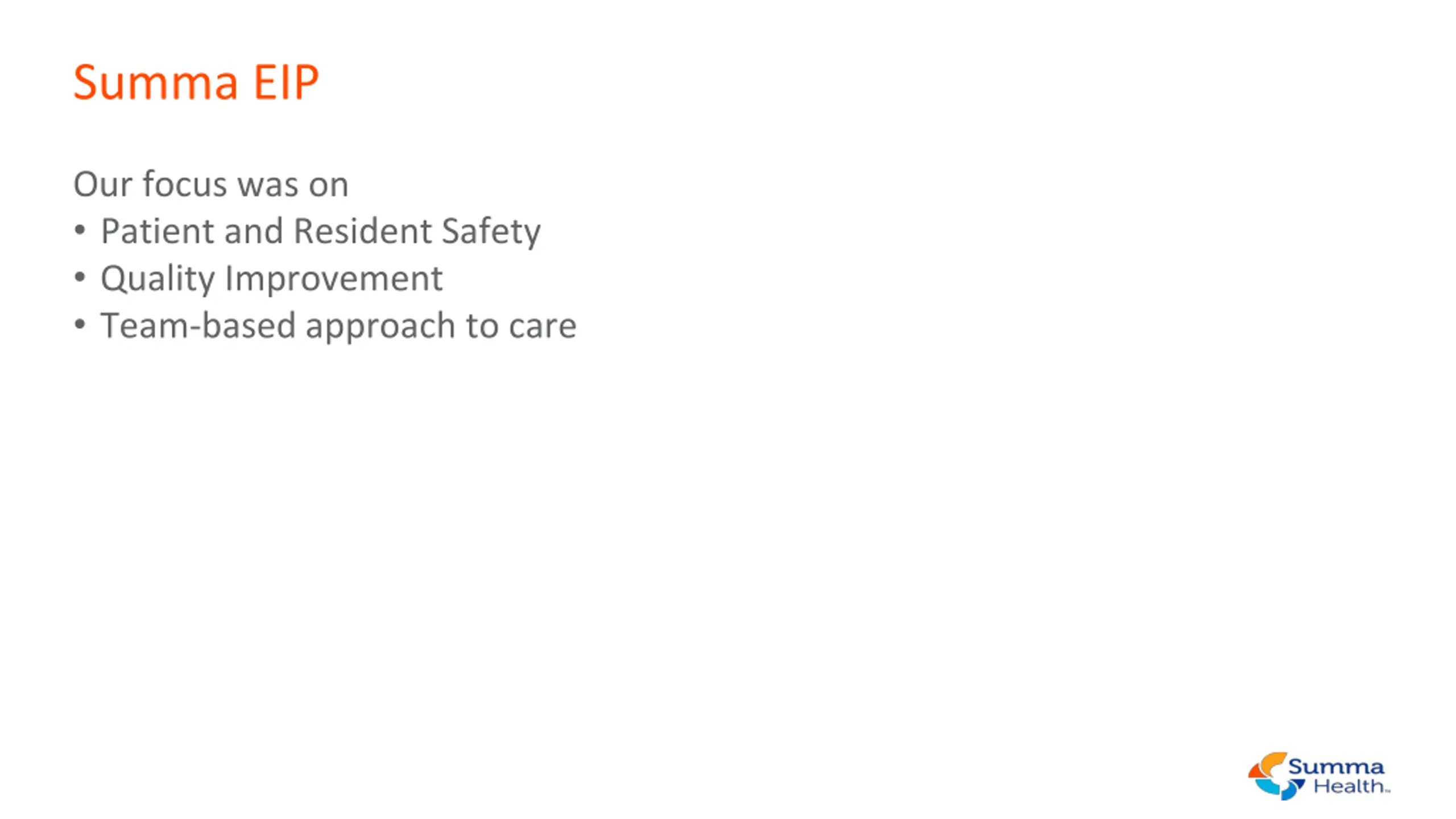 Summa EIP Our focus was on Patient and Resident Safety Quality Improvement Team-based approach to care