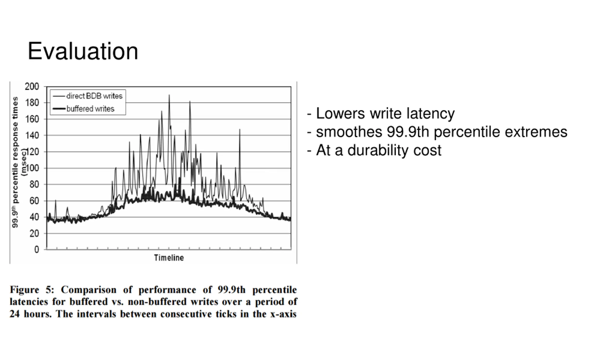 Evaluation - Lowers write latency - smoothes 99.9th percentile extremes - At a durability cost