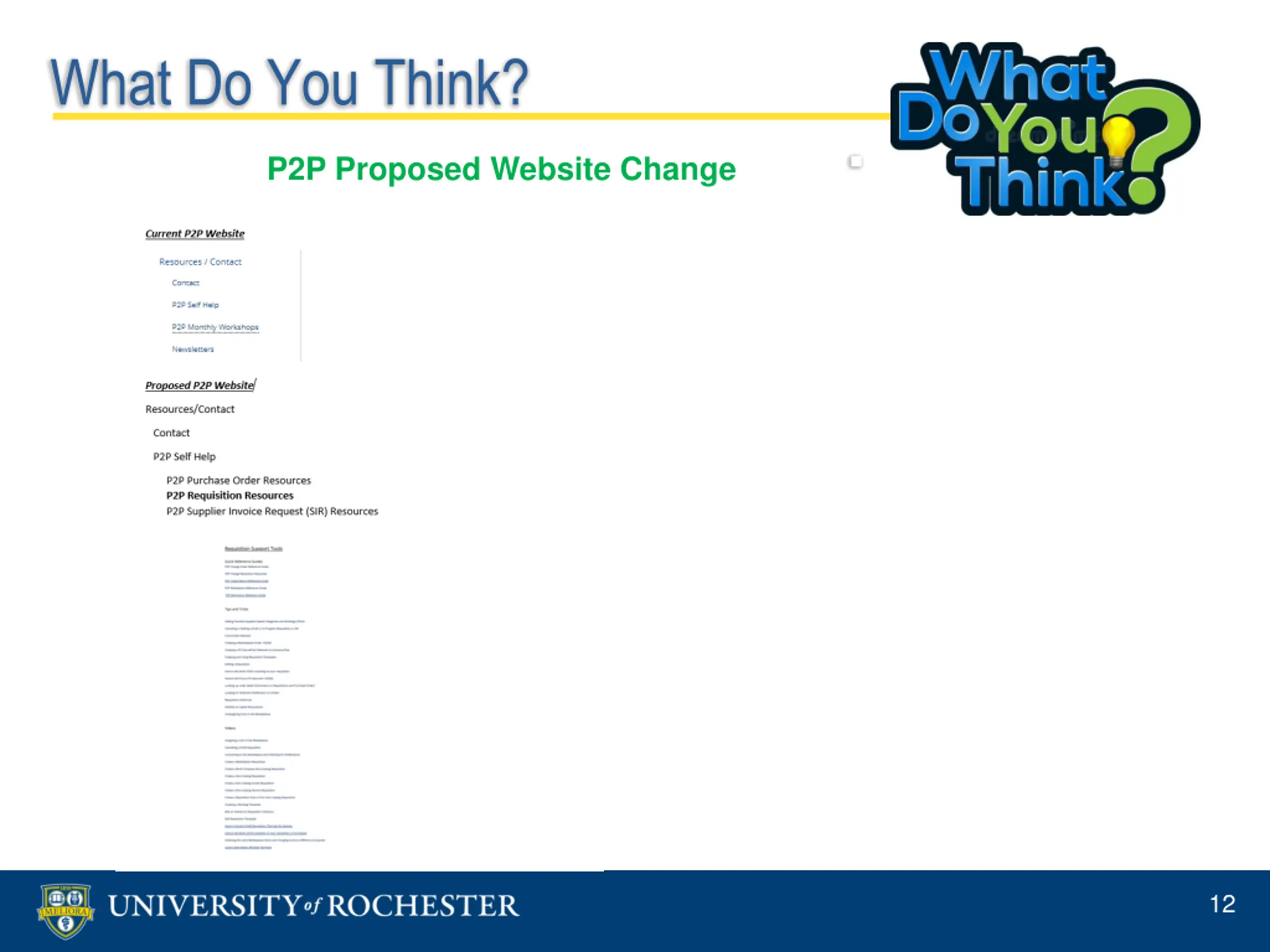 What Do You Think? Change OrdersXh13 P2P Proposed Website Change 12