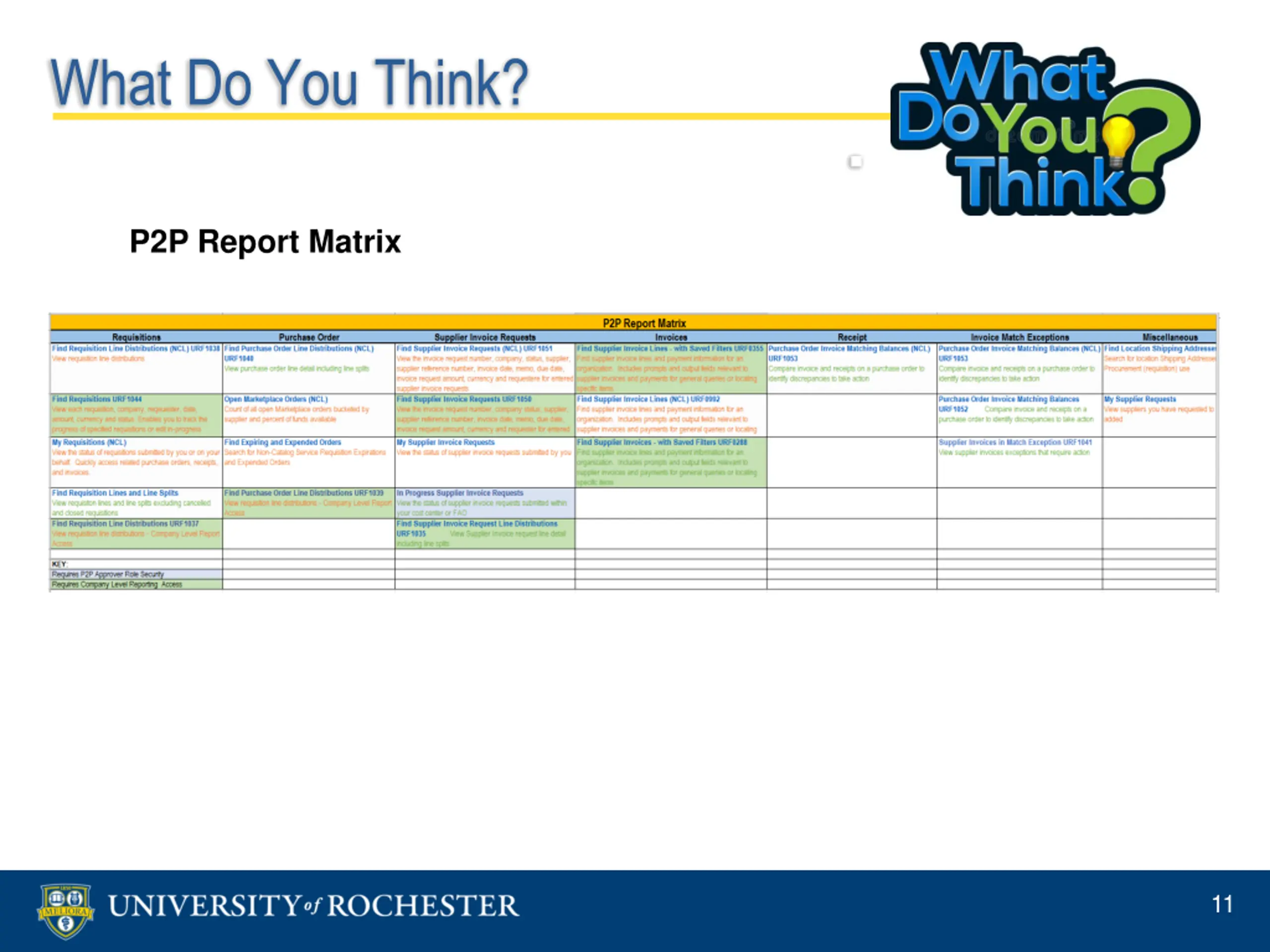What Do You Think? Change OrdersXh13 P2P Report Matrix 11