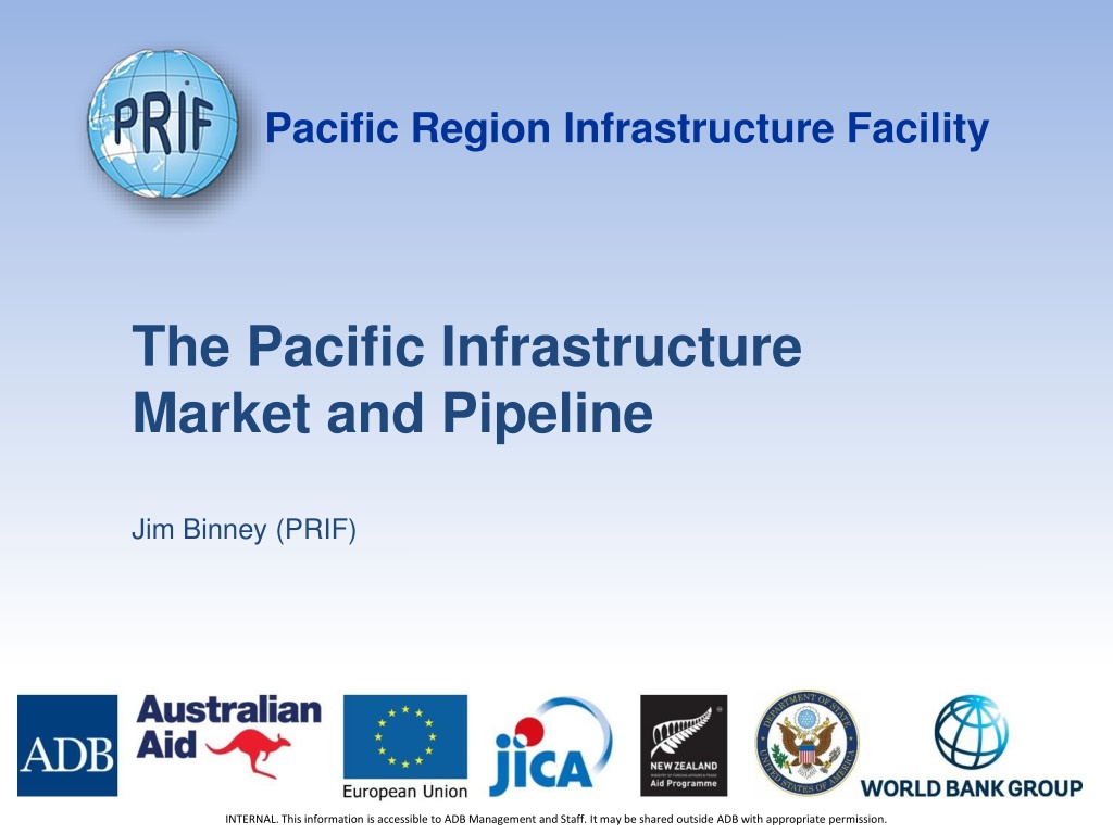 Pacific Region Infrastructure Facility The Pacific Infrastructure Market and Pipeline Jim Binney (PRIF) 1 INTERNAL. This information is accessible to ADB Management and Staff. It may be shared outside ADB with appropriate permission.