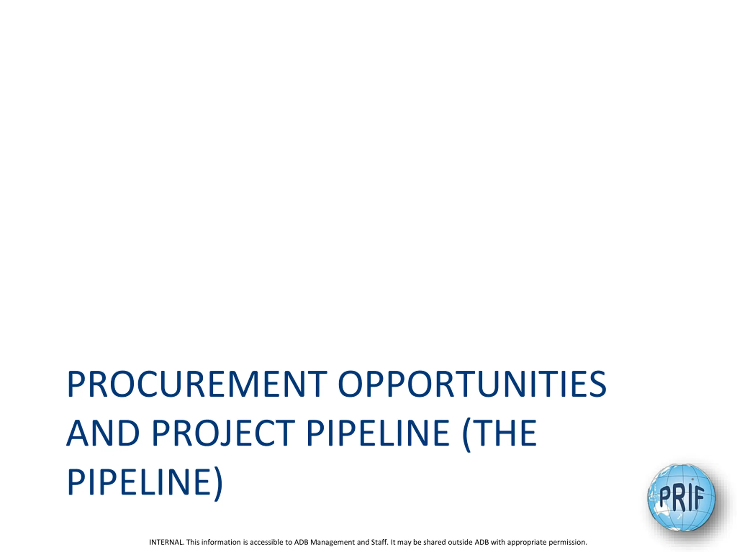 PROCUREMENT OPPORTUNITIES AND PROJECT PIPELINE (THE PIPELINE) INTERNAL. This information is accessible to ADB Management and Staff. It may be shared outside ADB with appropriate permission.
