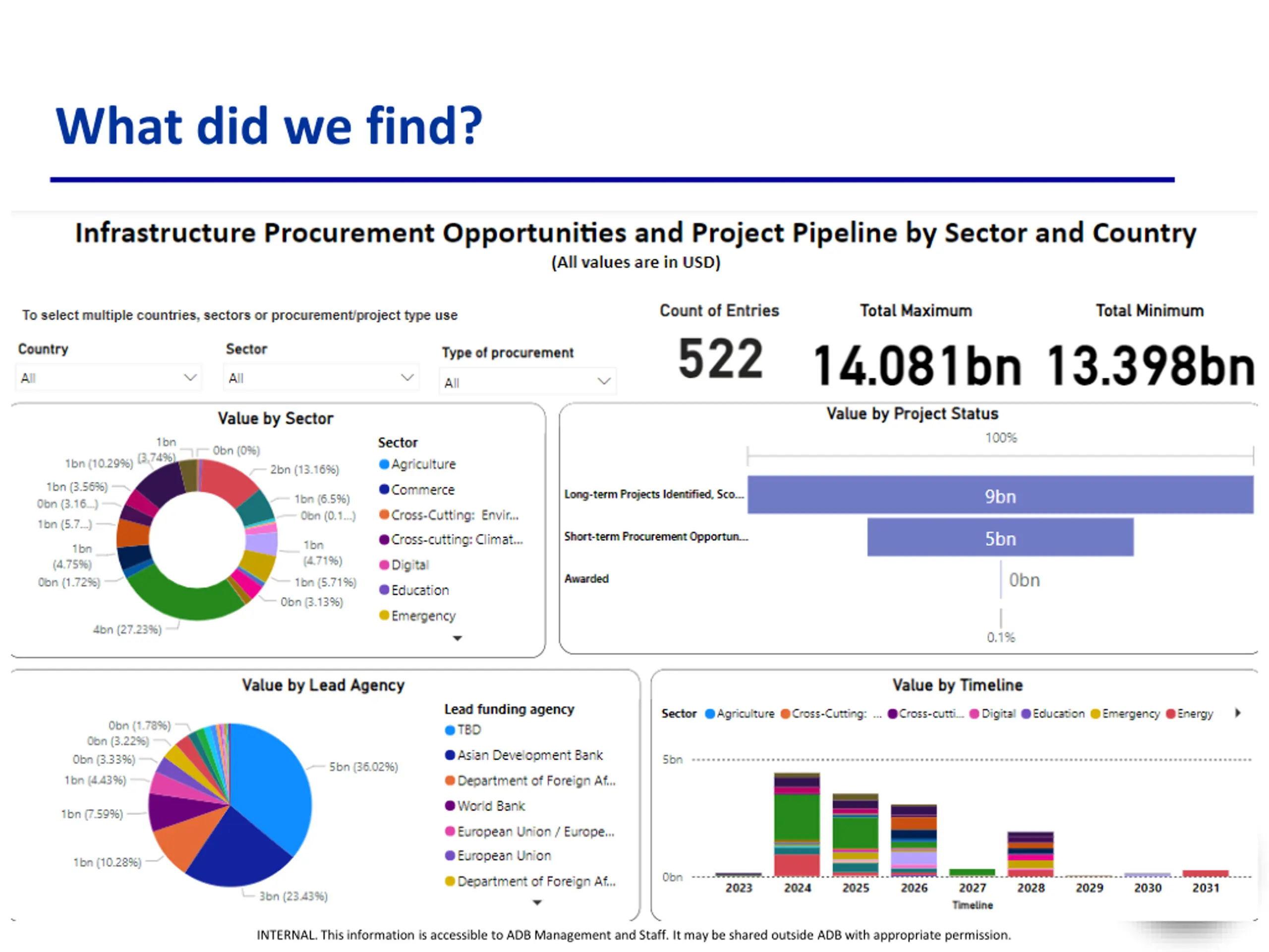 What did we find? INTERNAL. This information is accessible to ADB Management and Staff. It may be shared outside ADB with appropriate permission.