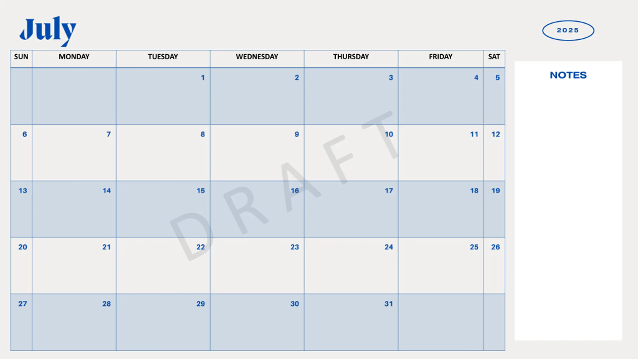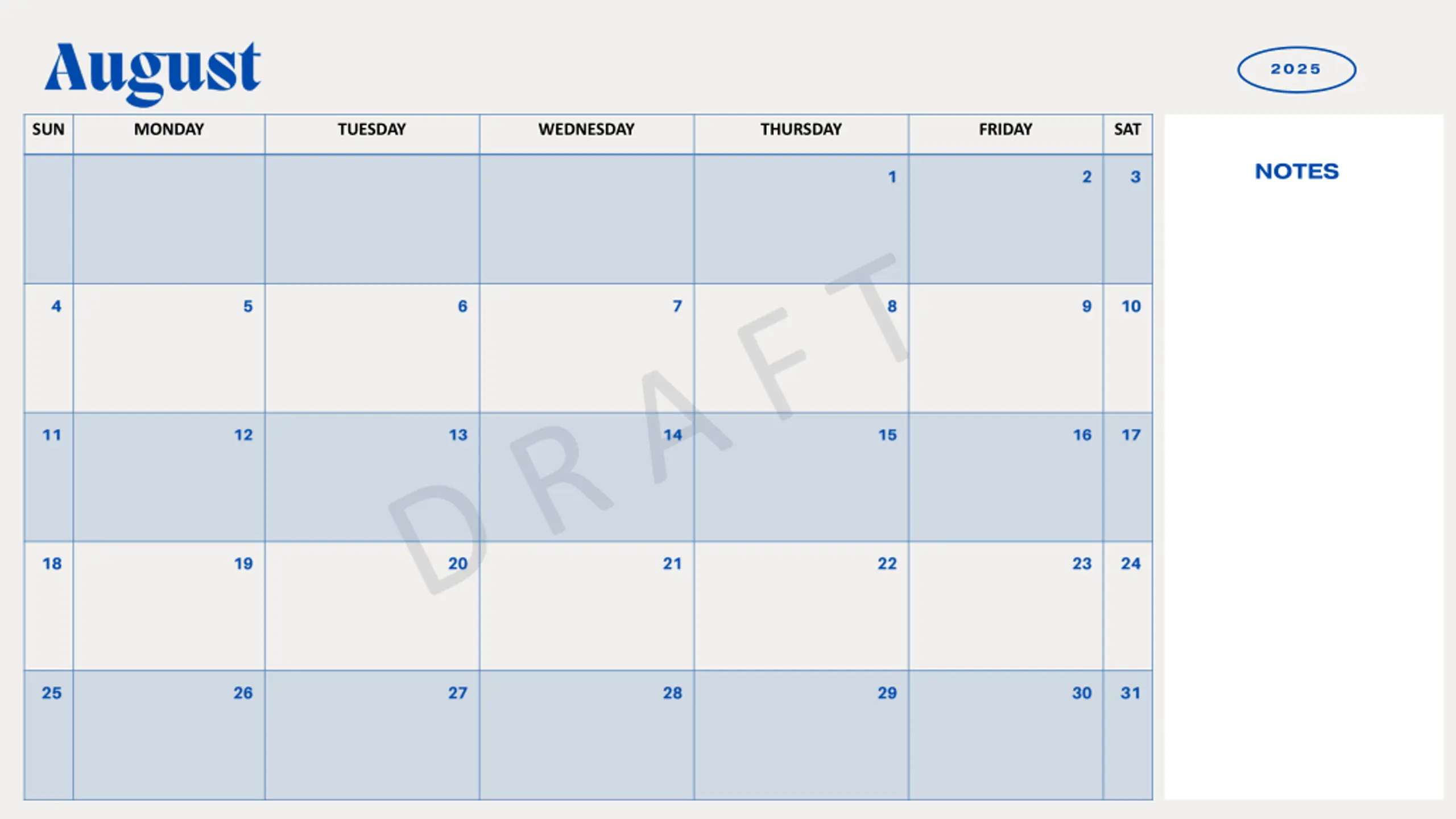 2 0 2 5 SUN MONDAY TUESDAY WEDNESDAY THURSDAY FRIDAY SAT NOTES
