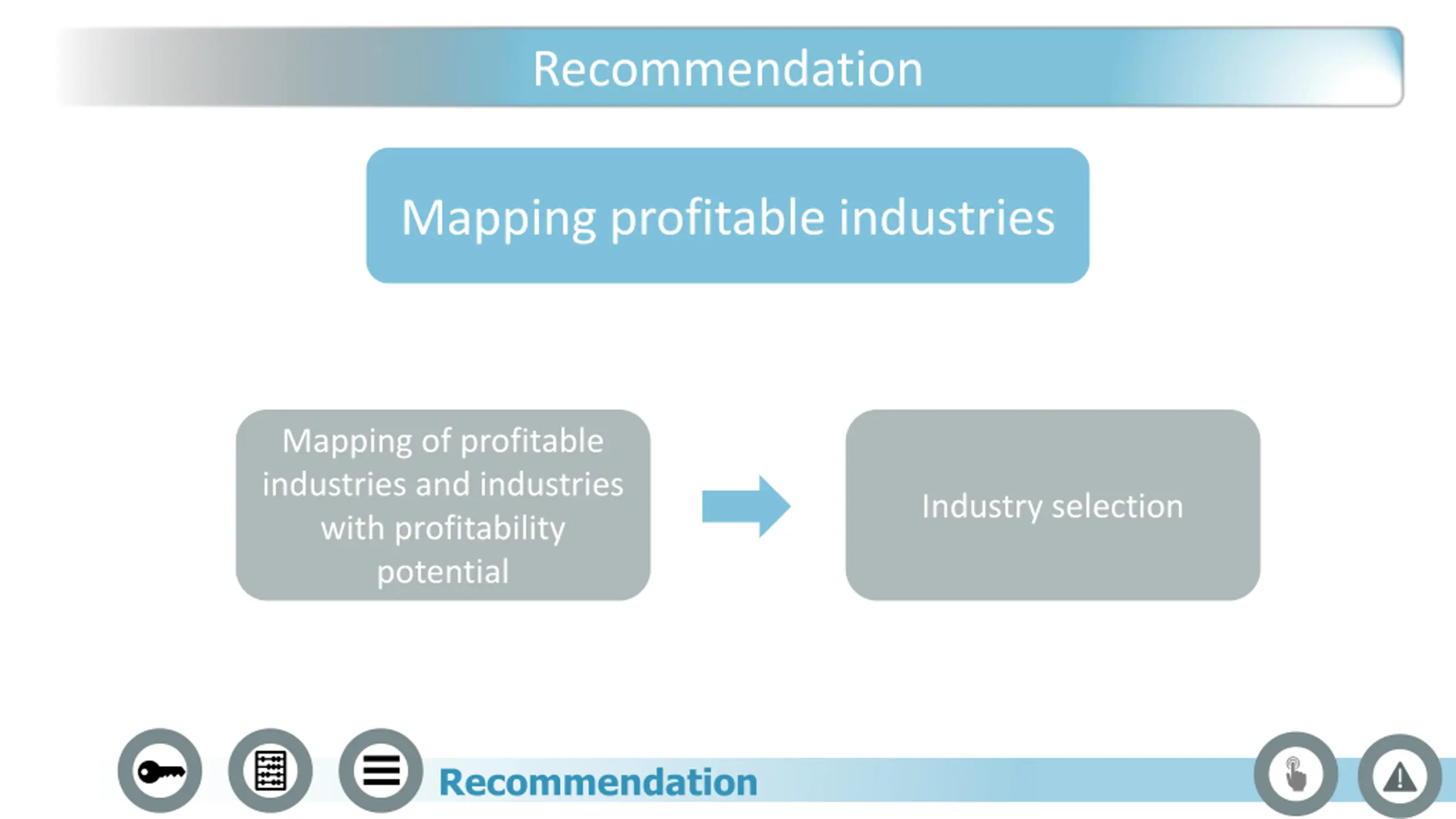 Recommendation Mapping profitable industries Mapping of profitable industries and industries with profitability potential Industry selection Recommendation