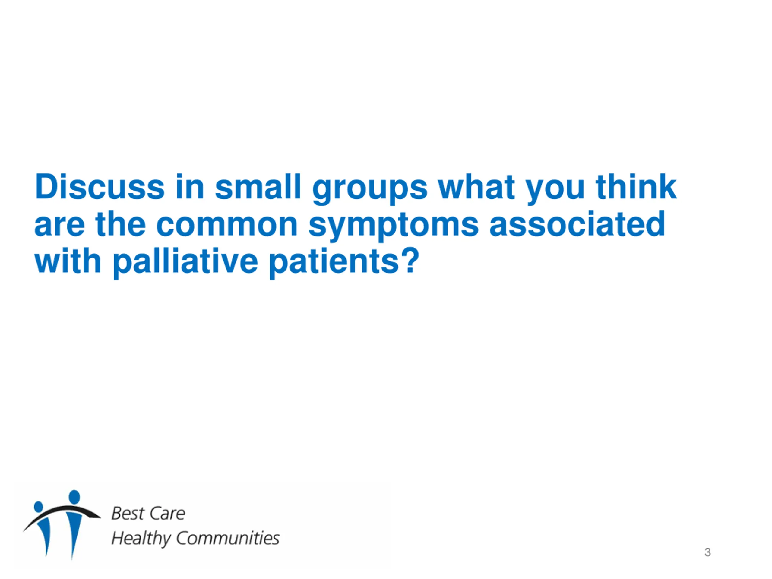 Discuss in small groups what you think are the common symptoms associated with palliative patients? 3