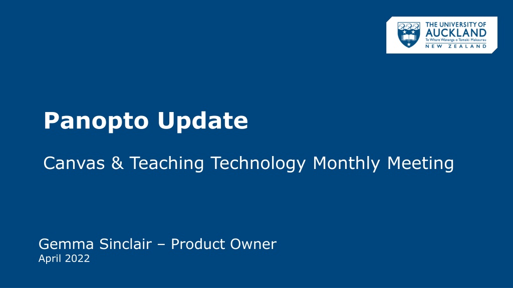 Panopto Update Canvas & Teaching Technology Monthly Meeting Gemma Sinclair Product Owner April 2022