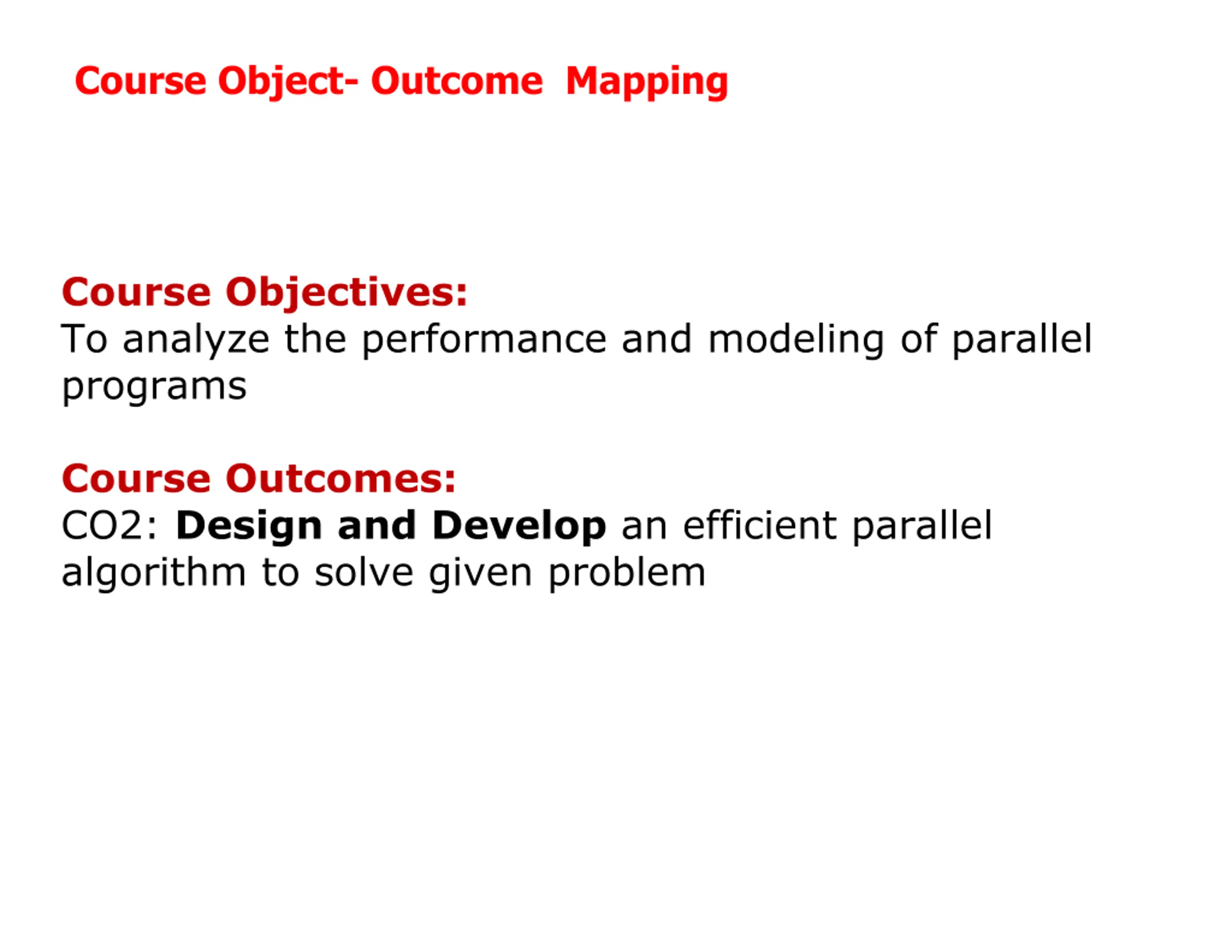 Course Object- Outcome Mapping Course Objectives: To analyze the performance and modeling of parallel programs Course Outcomes: CO2: Design and Develop an efficient parallel algorithm to solve given problem
