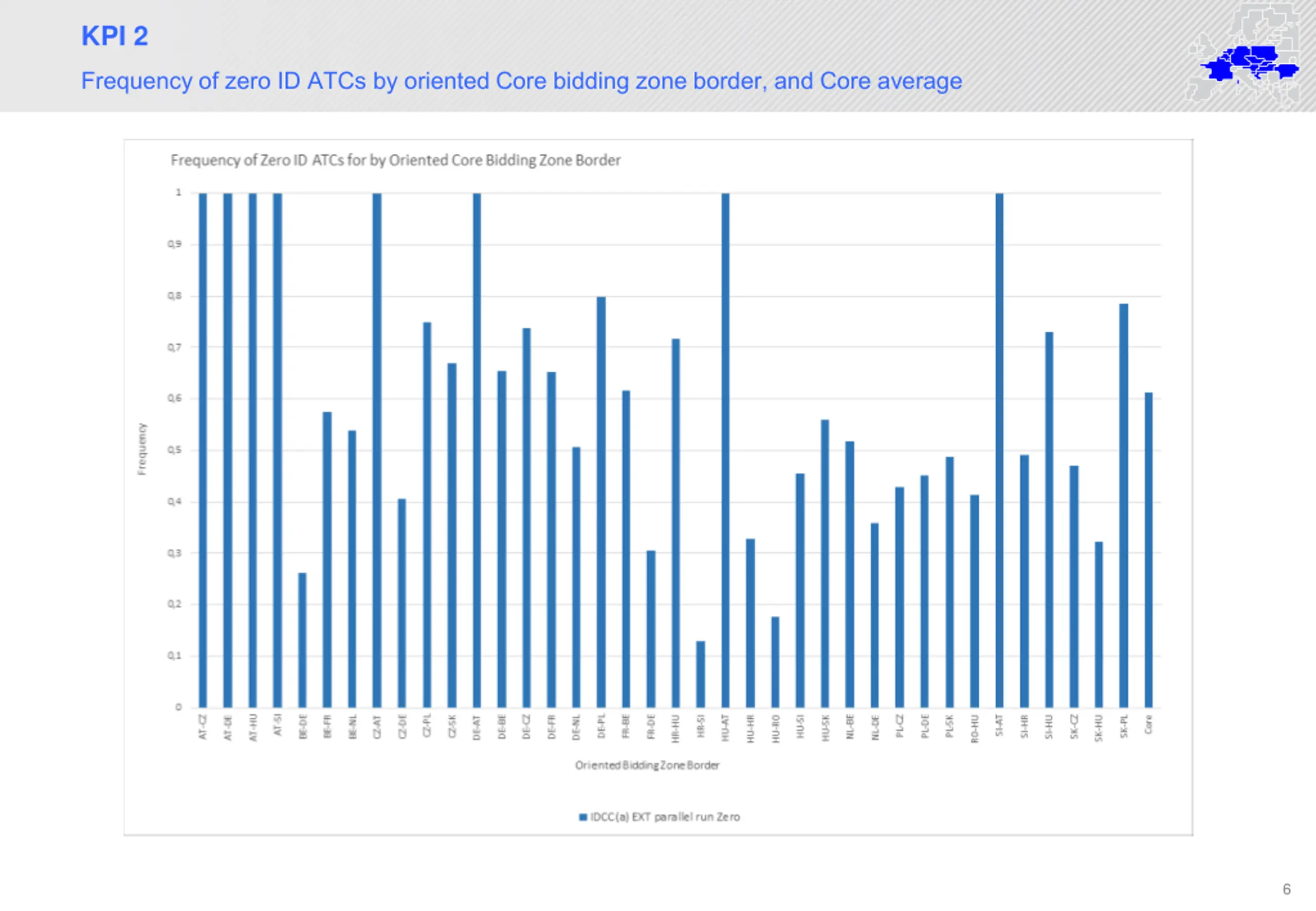 KPI 2 Frequency of zero ID ATCs by oriented Core bidding zone border, and Core average 6