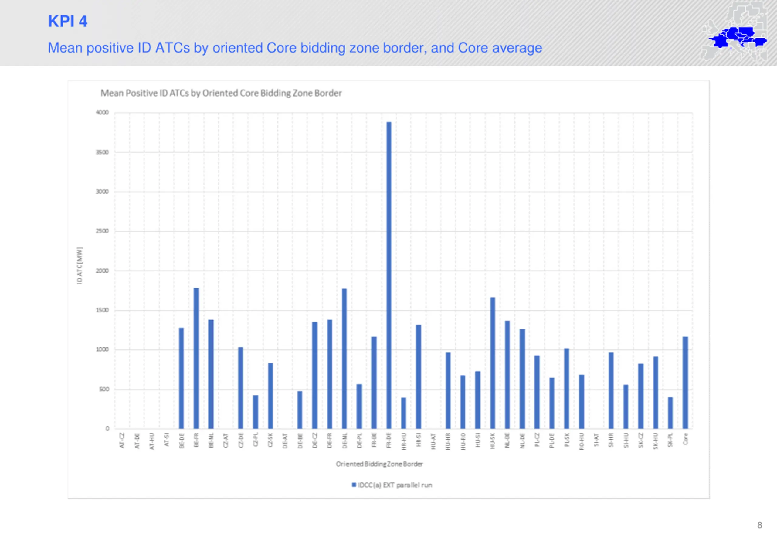 KPI 4 Mean positive ID ATCs by oriented Core bidding zone border, and Core average 8